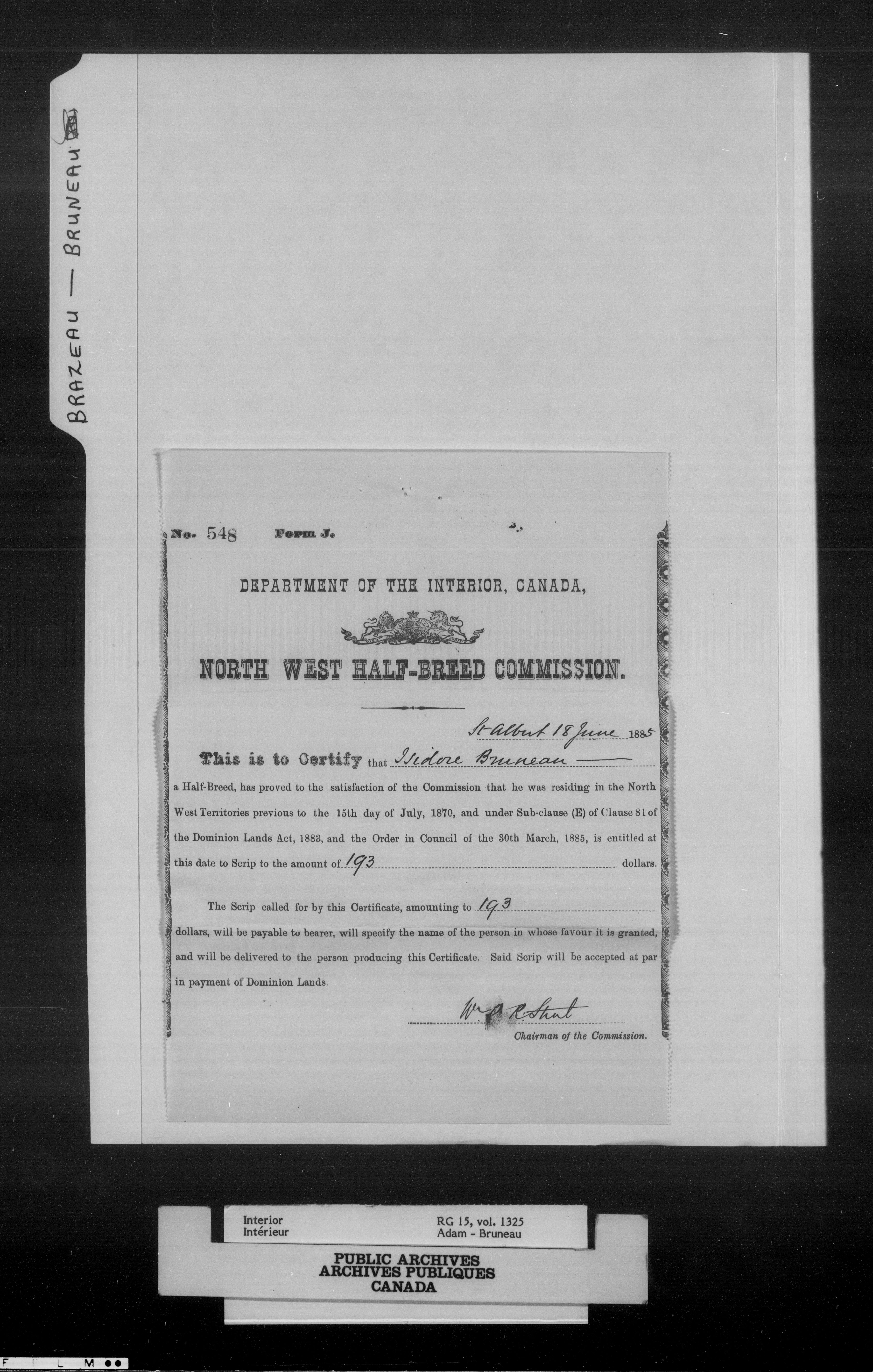 Department of the Interior, Dominion Lands Branch : North-West Territories Métis scrip applications - 14936