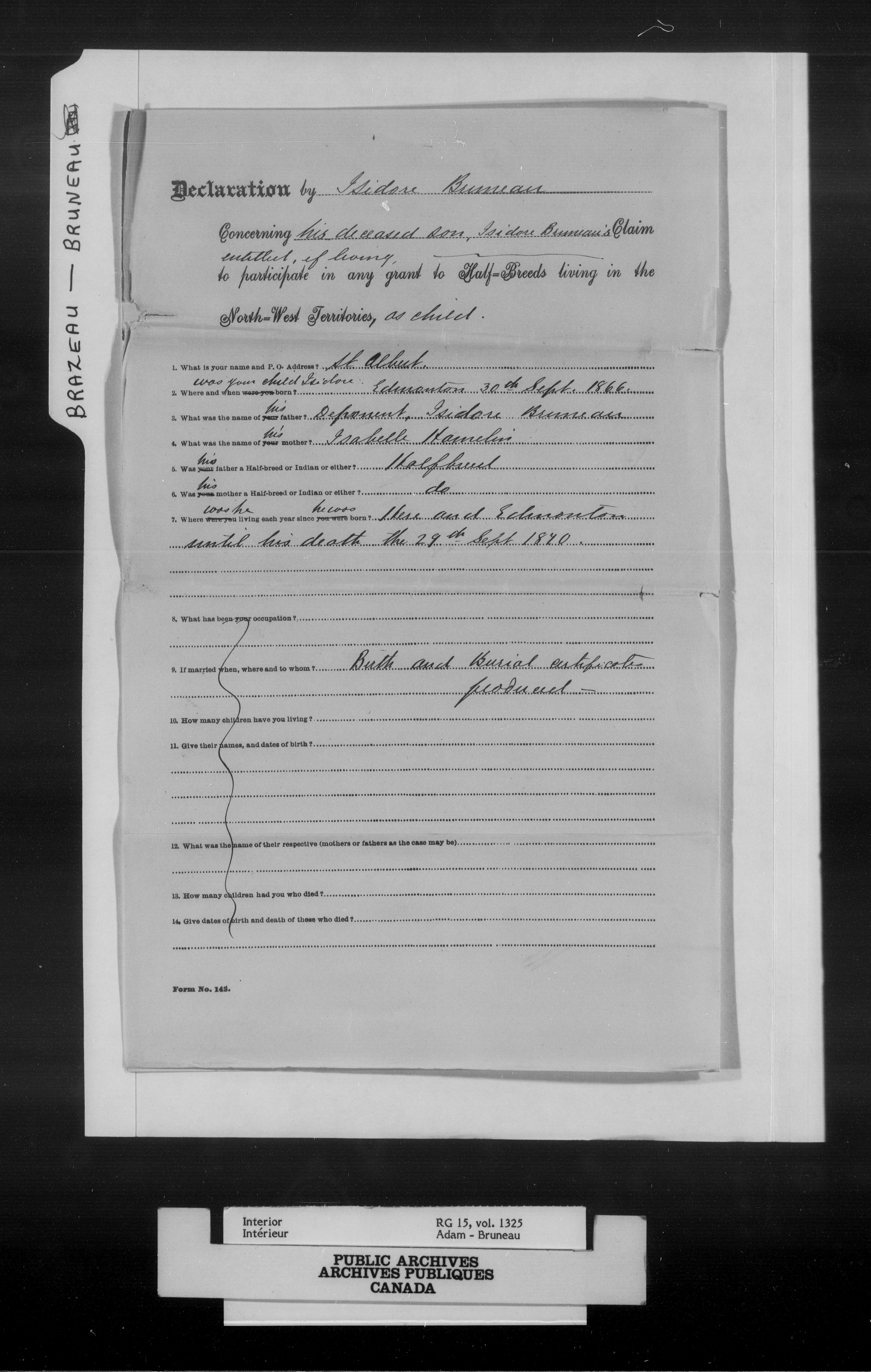 Department of the Interior, Dominion Lands Branch : North-West Territories Métis scrip applications - 14936