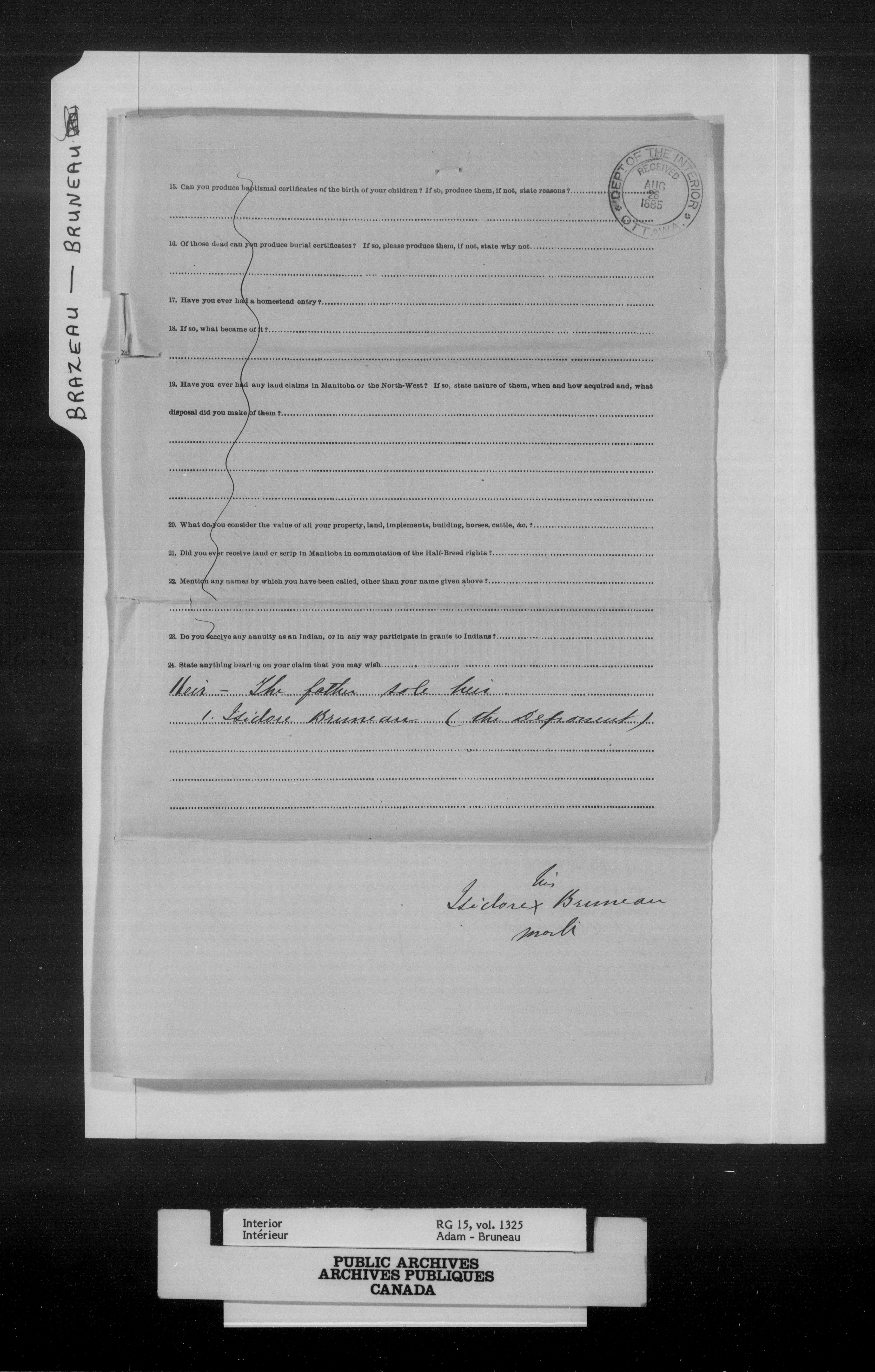 Department of the Interior, Dominion Lands Branch : North-West Territories Métis scrip applications - 14936