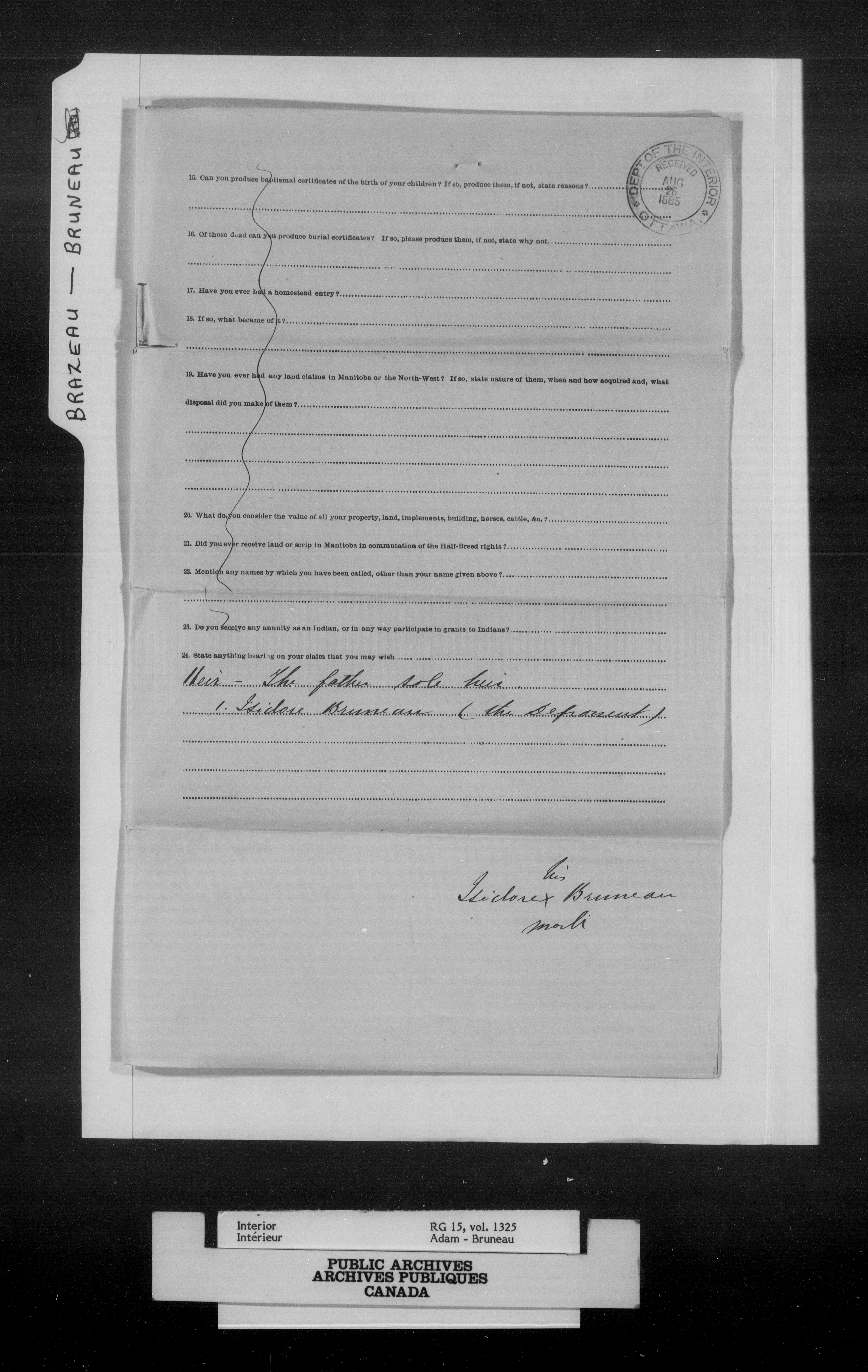 Department of the Interior, Dominion Lands Branch : North-West Territories Métis scrip applications - 14936