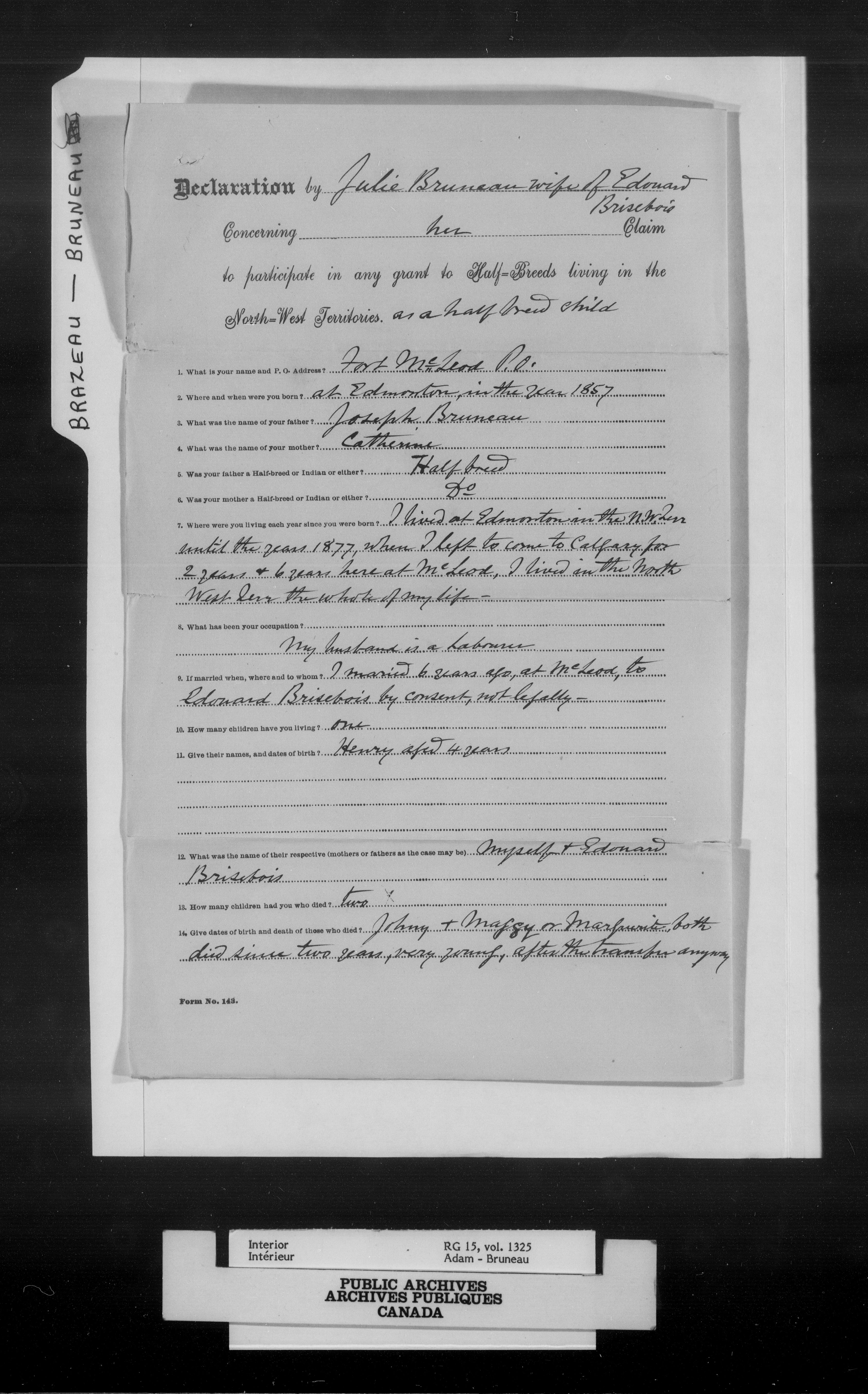 Department of the Interior, Dominion Lands Branch : North-West Territories Métis scrip applications - 14936