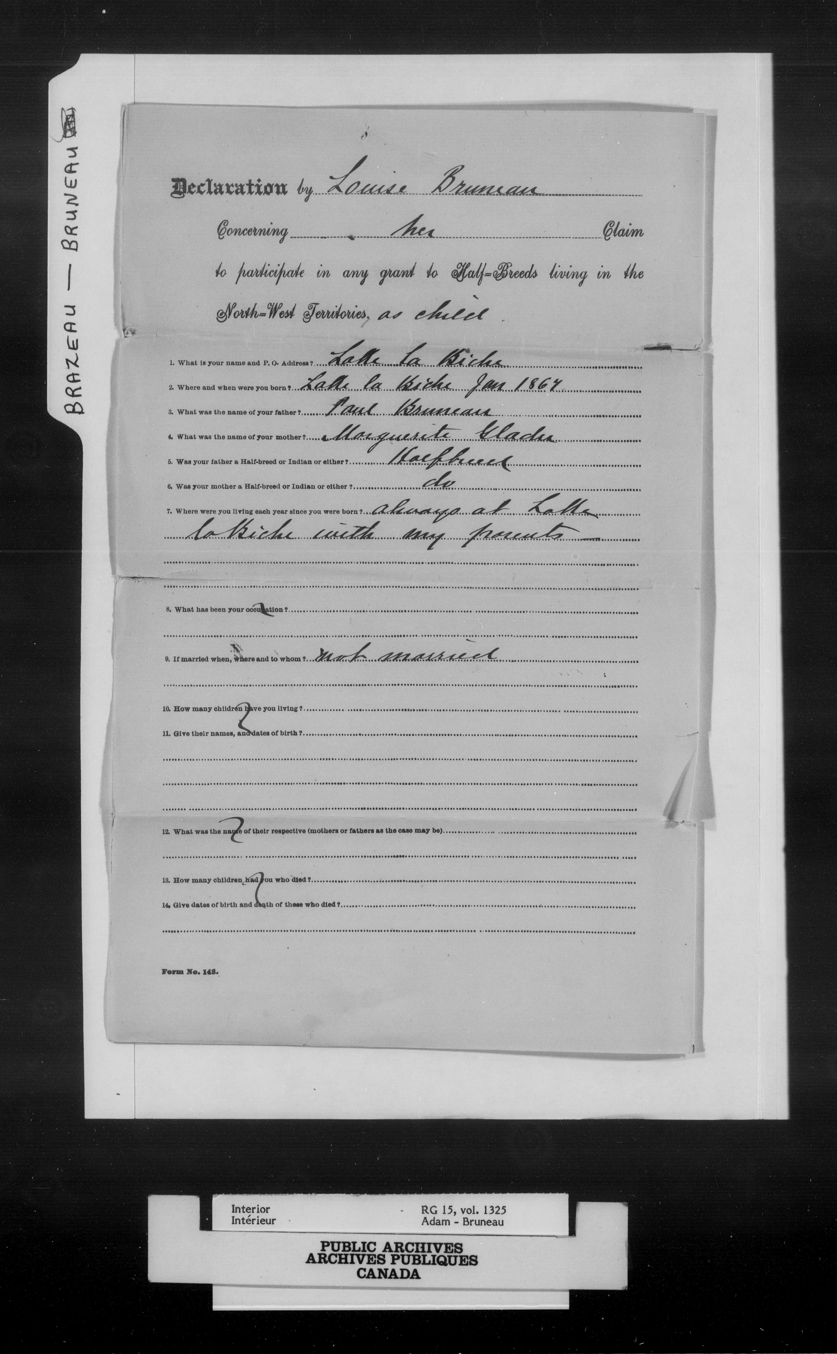 Department of the Interior, Dominion Lands Branch : North-West Territories Métis scrip applications - 14936
