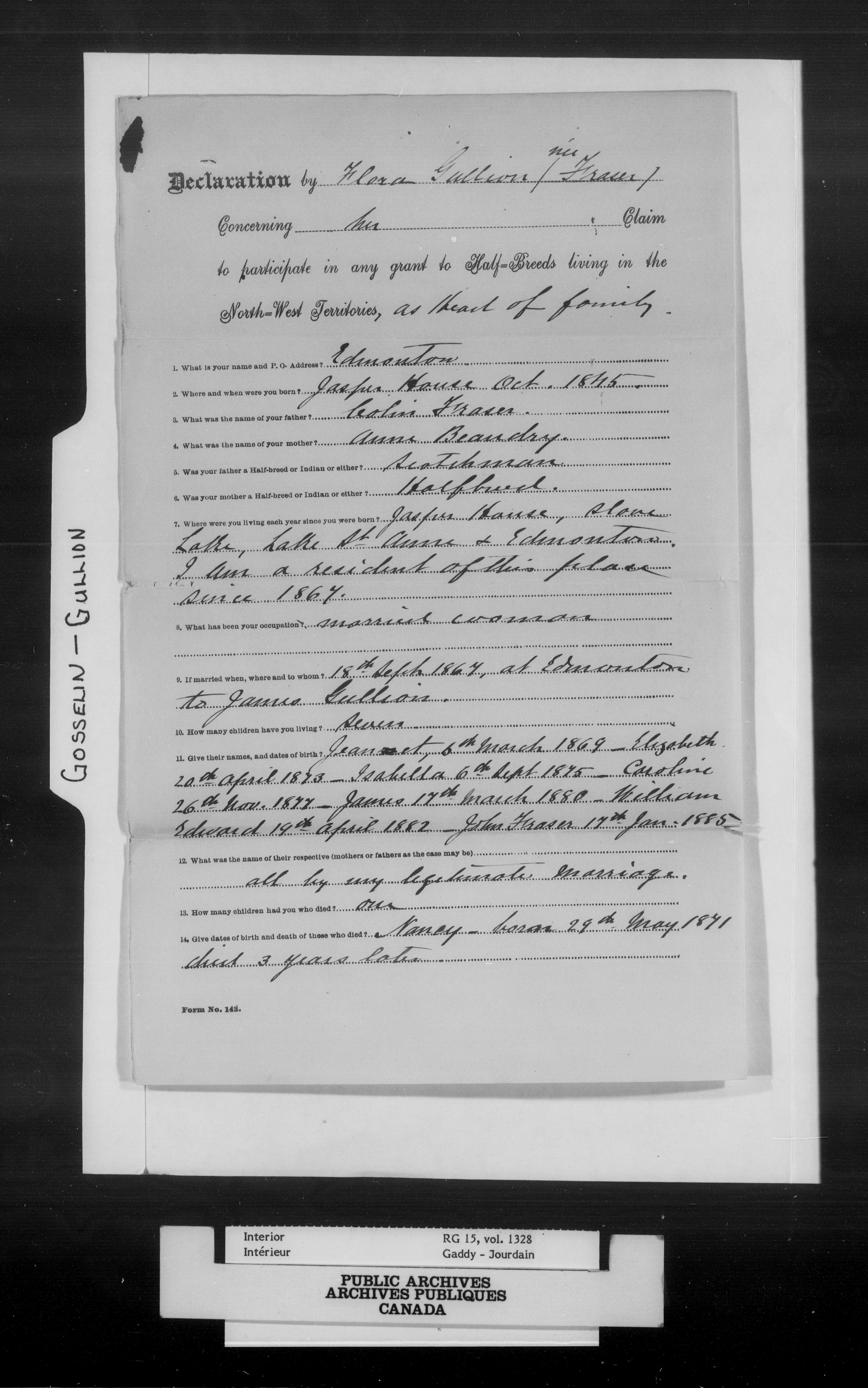 Department of the Interior, Dominion Lands Branch : North-West Territories Métis scrip applications - 14939
