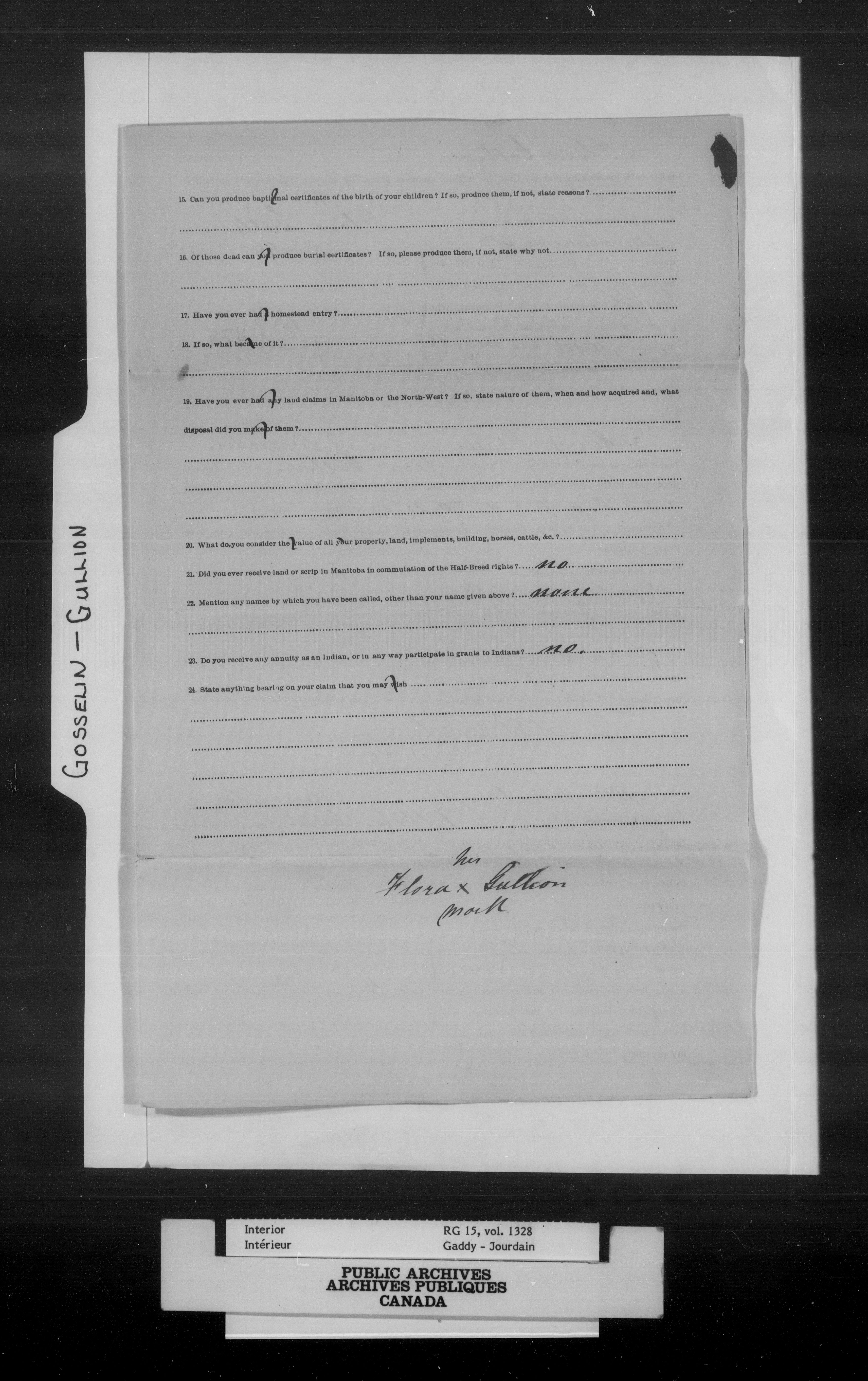 Department of the Interior, Dominion Lands Branch : North-West Territories Métis scrip applications : C-14939