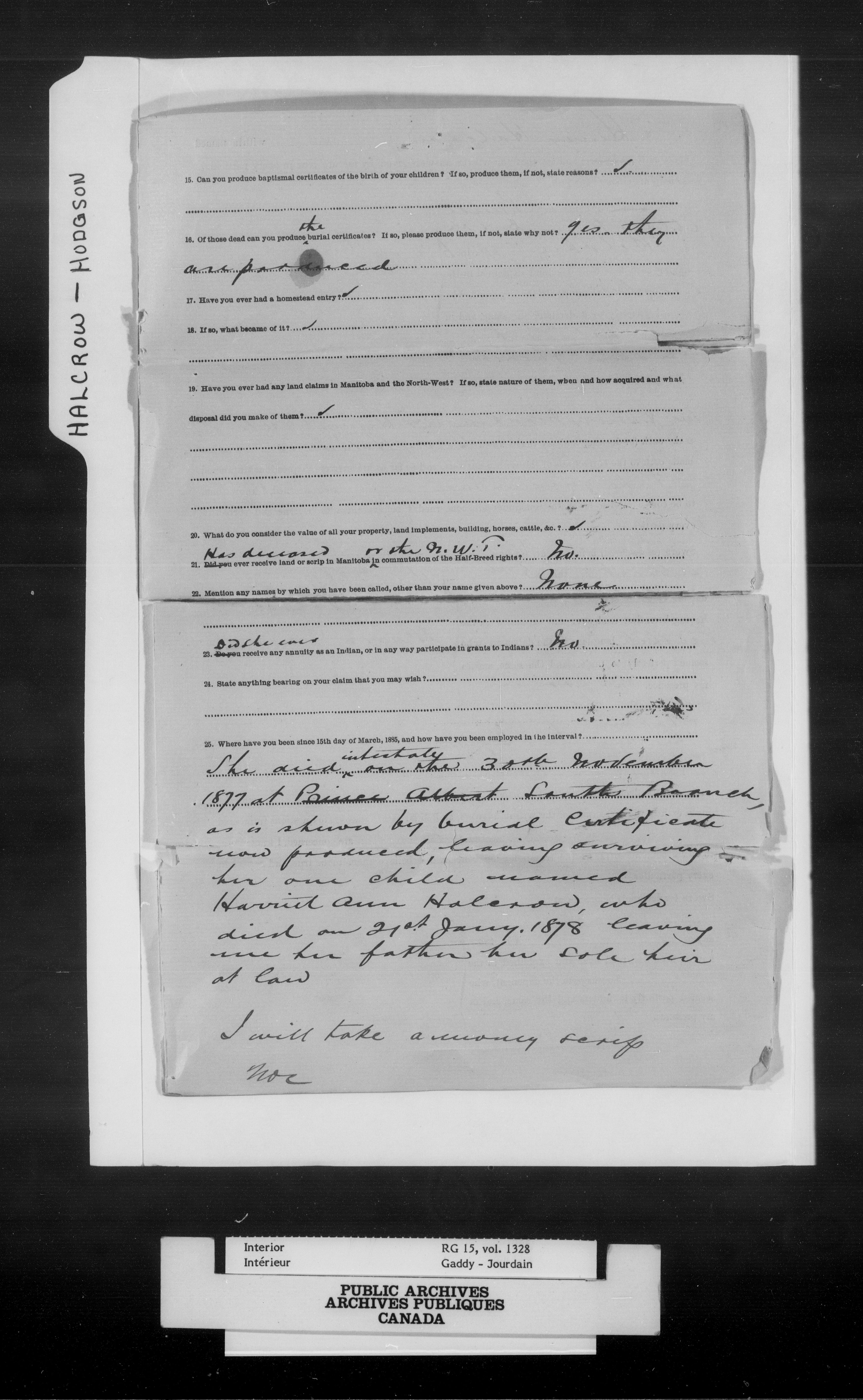Department of the Interior, Dominion Lands Branch : North-West Territories Métis scrip applications - 14939