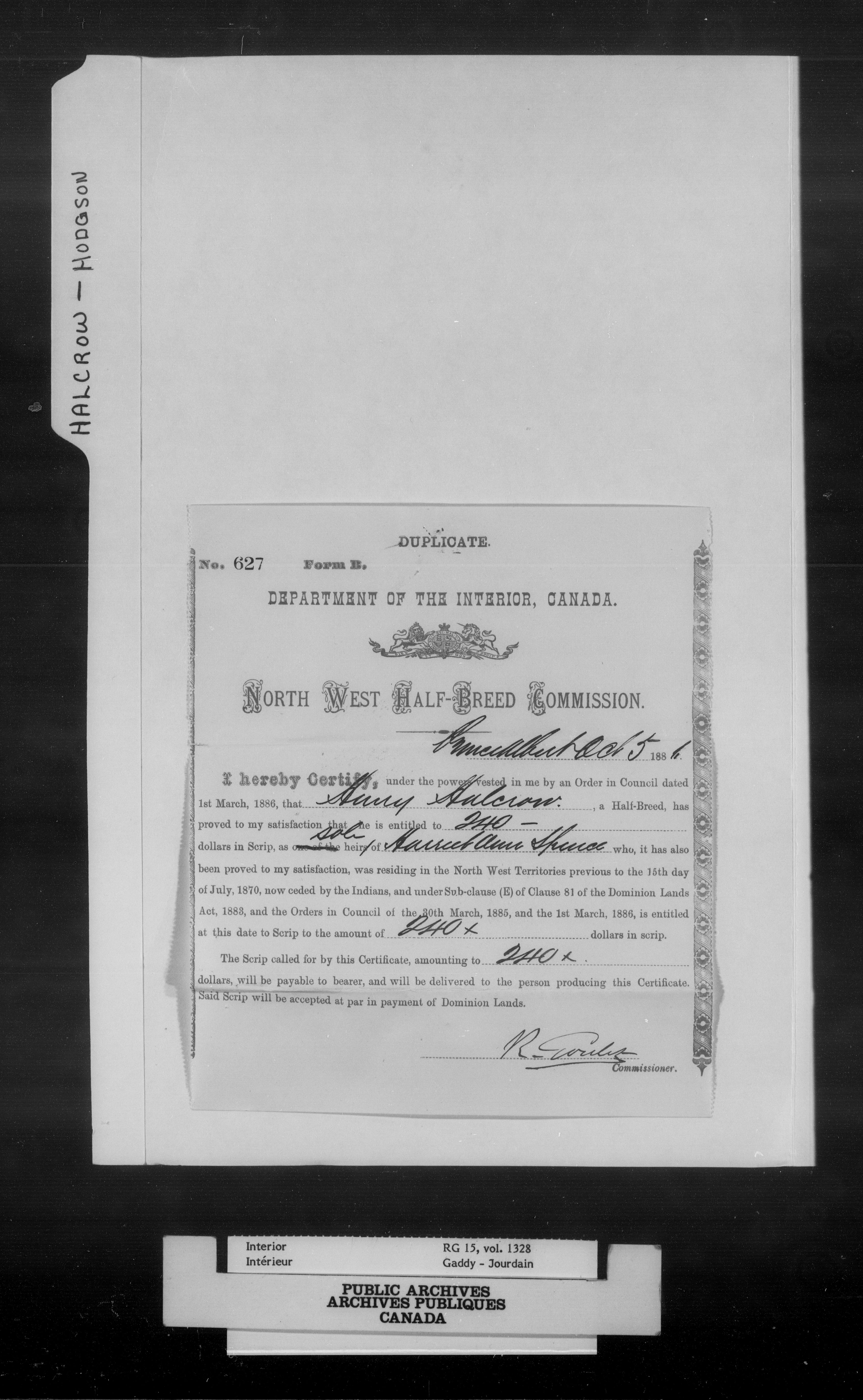 Department of the Interior, Dominion Lands Branch : North-West Territories Métis scrip applications : C-14939