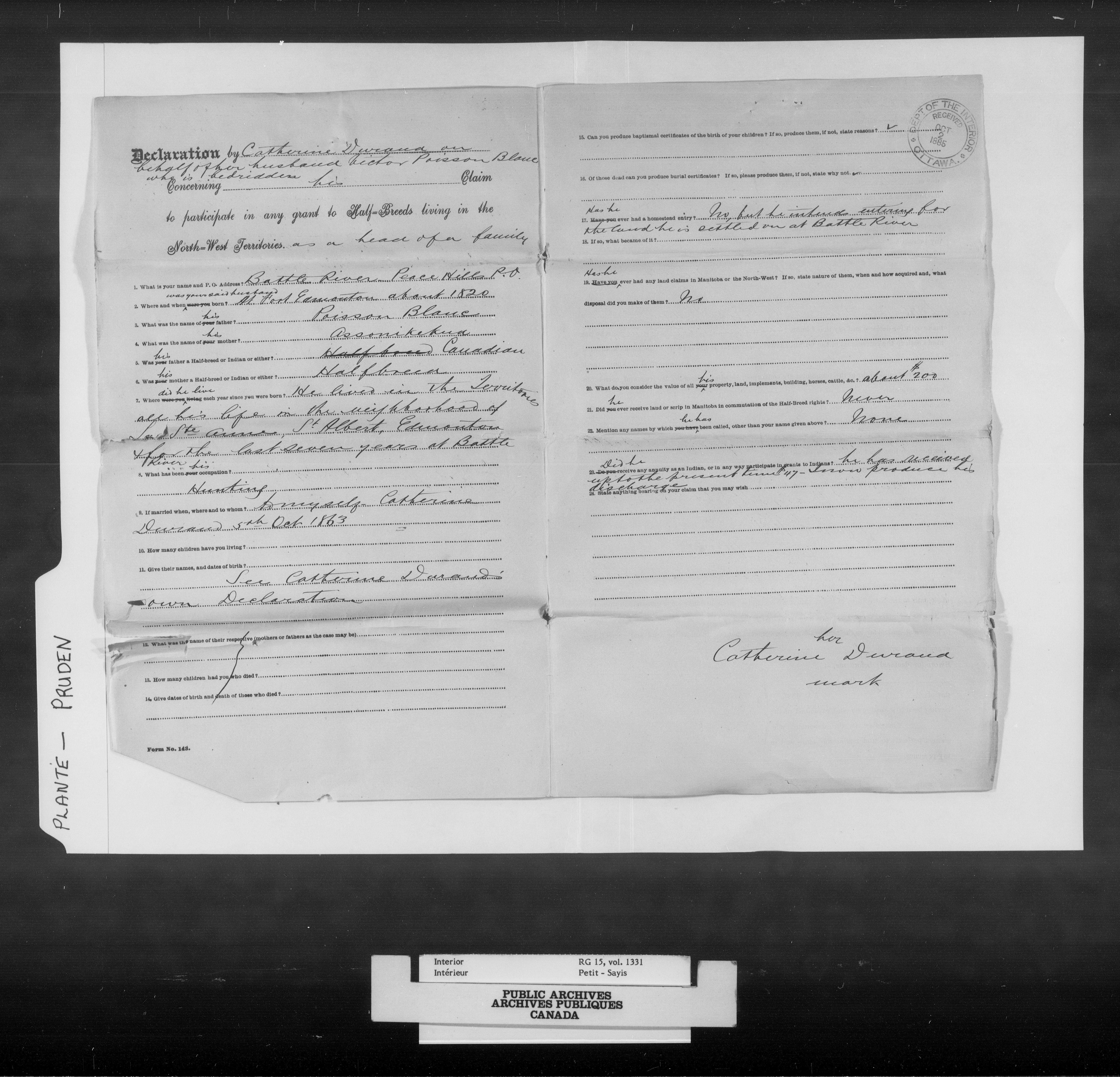 Department of the Interior, Dominion Lands Branch : North-West Territories Métis scrip applications - 14941