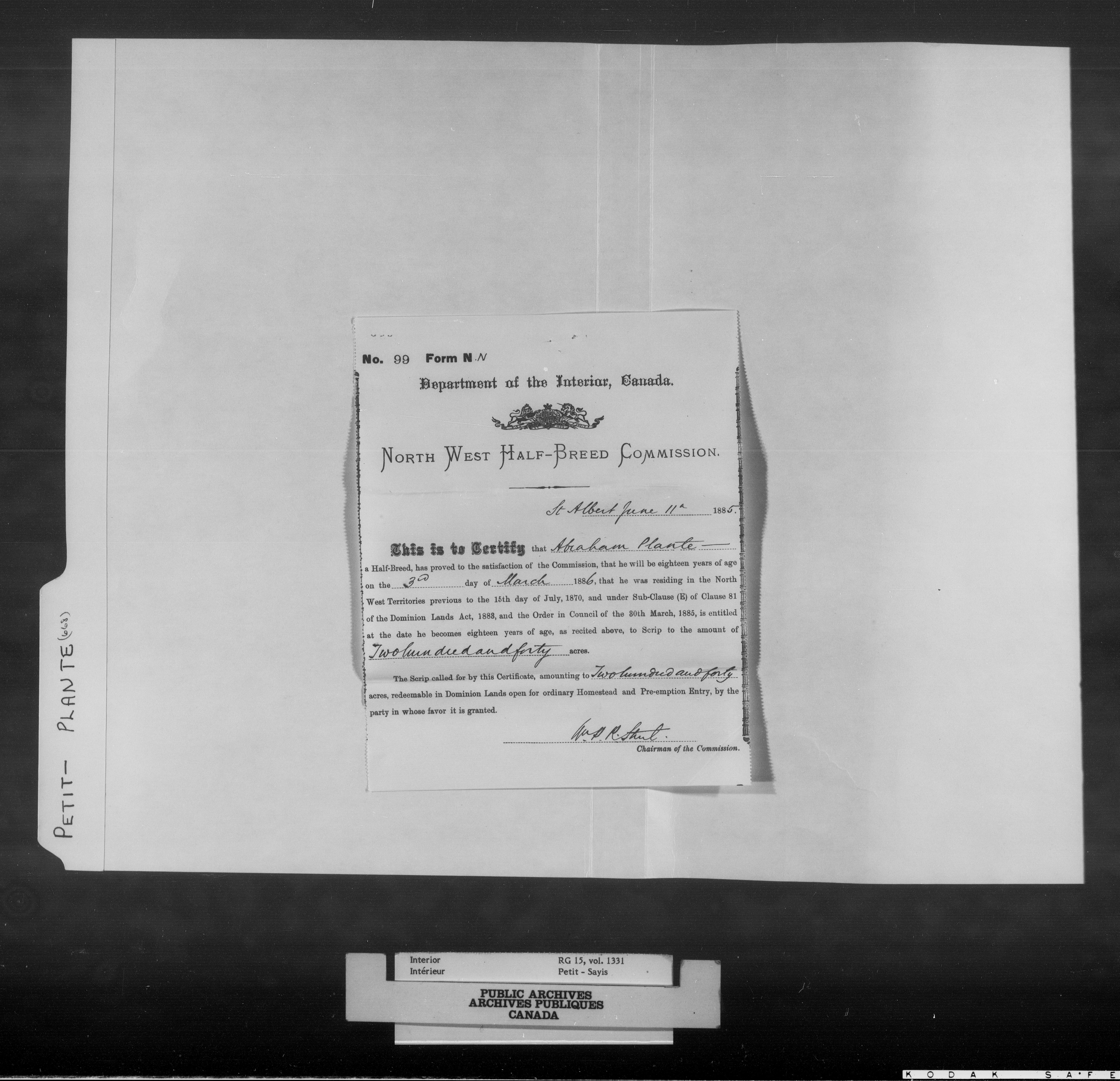 Department of the Interior, Dominion Lands Branch : North-West Territories Métis scrip applications : C-14941