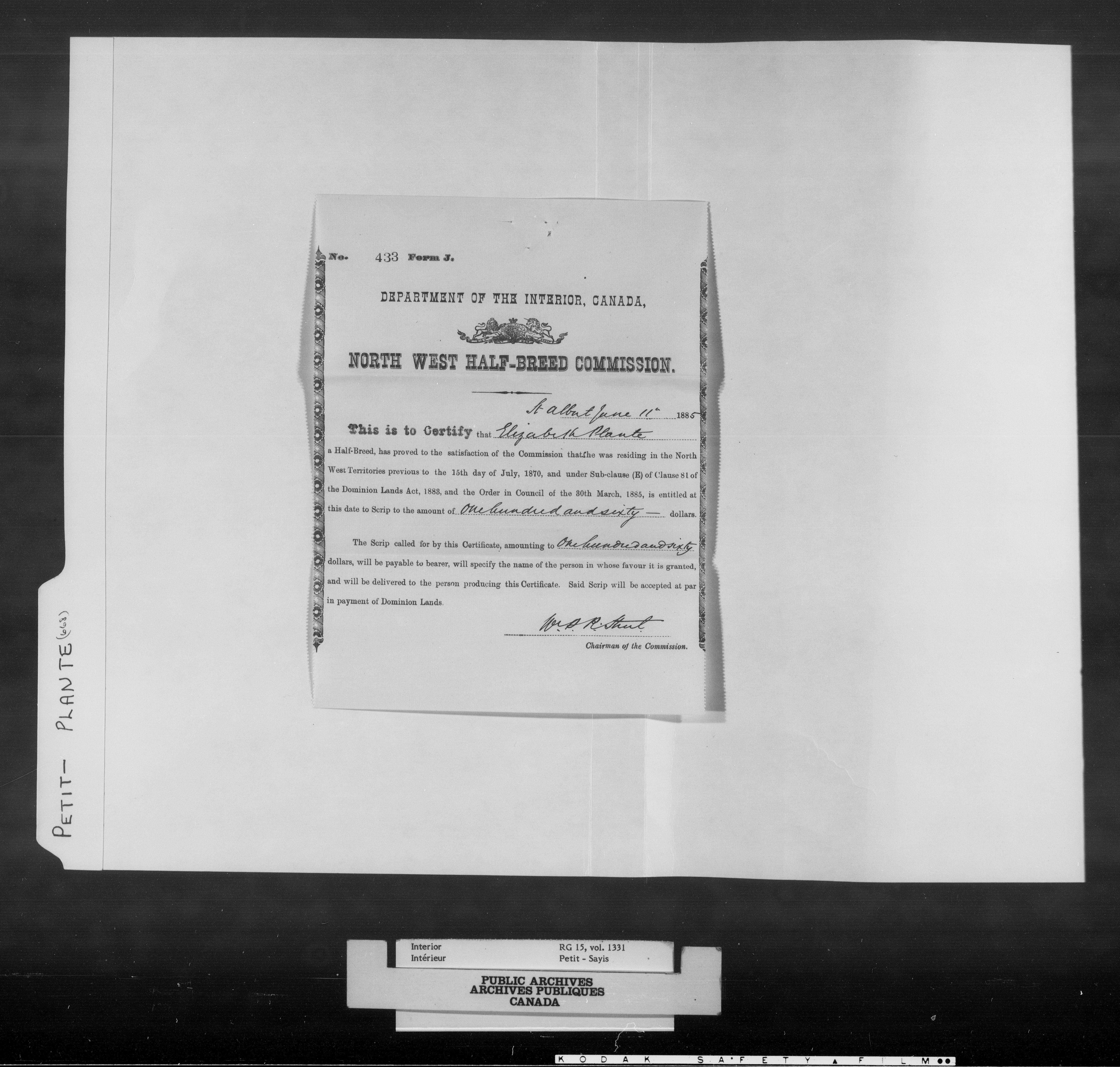 Department of the Interior, Dominion Lands Branch : North-West Territories Métis scrip applications : C-14941