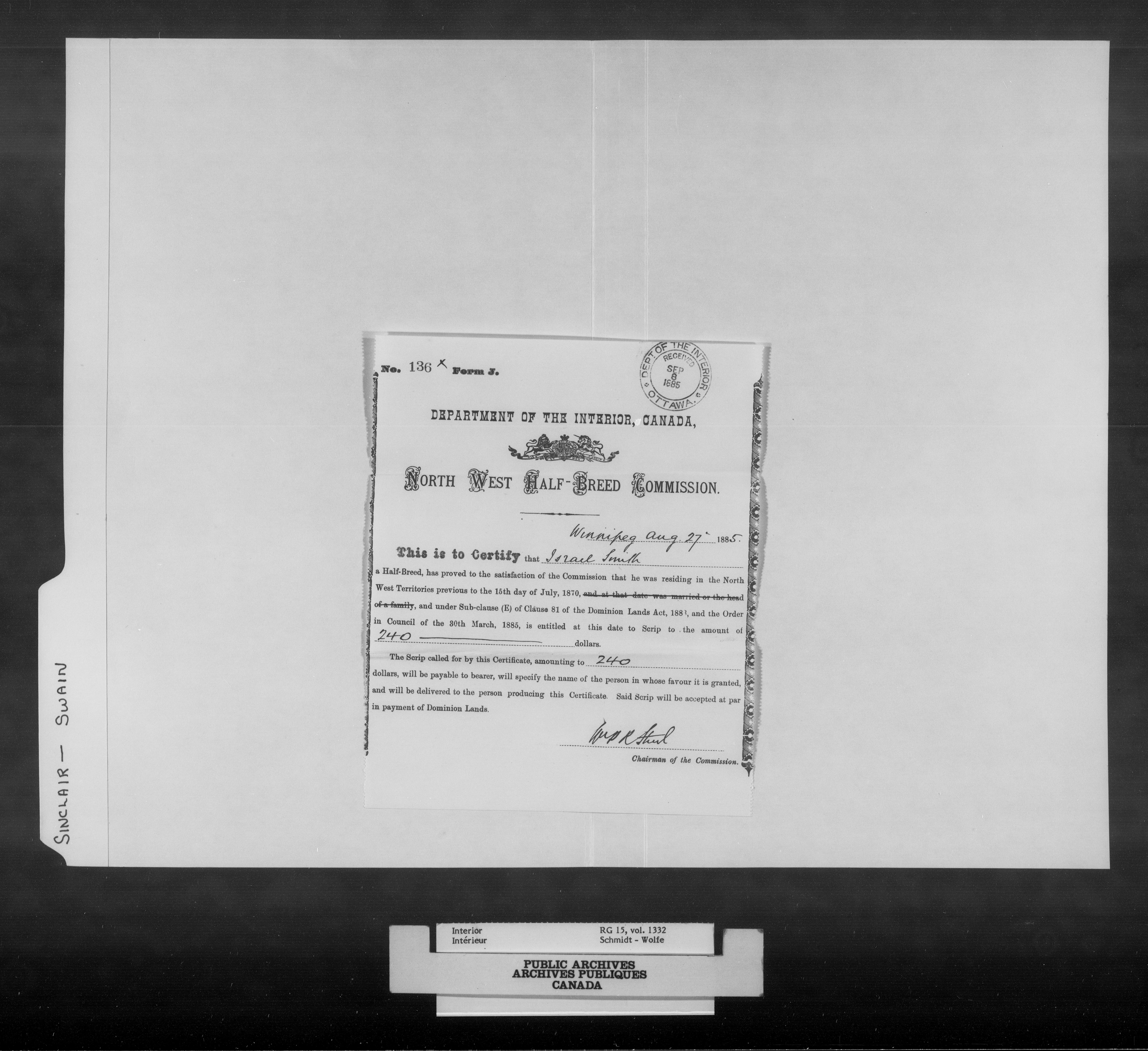Department of the Interior, Dominion Lands Branch : North-West Territories Métis scrip applications : C-14941