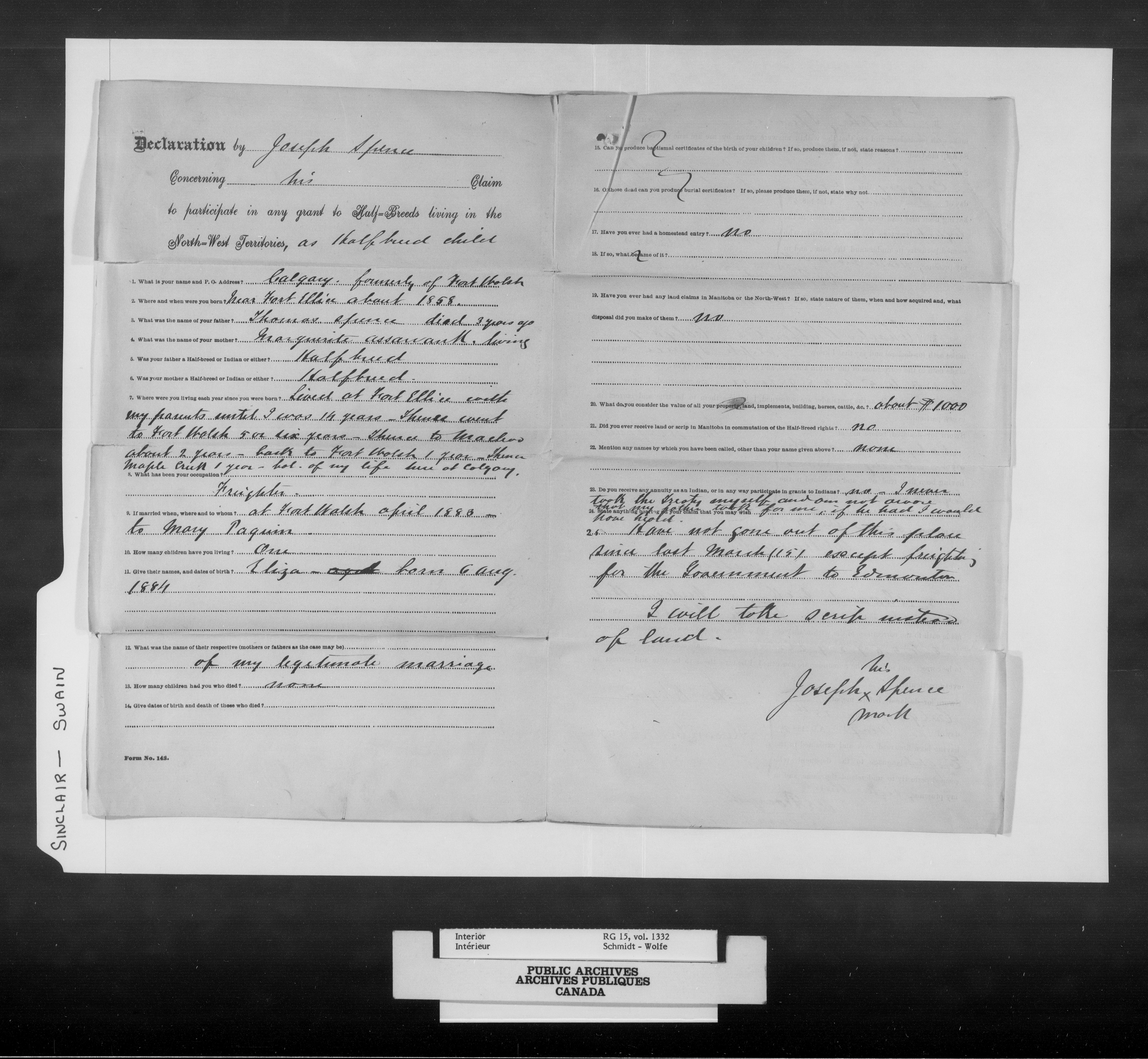 Department of the Interior, Dominion Lands Branch : North-West Territories Métis scrip applications : C-14941