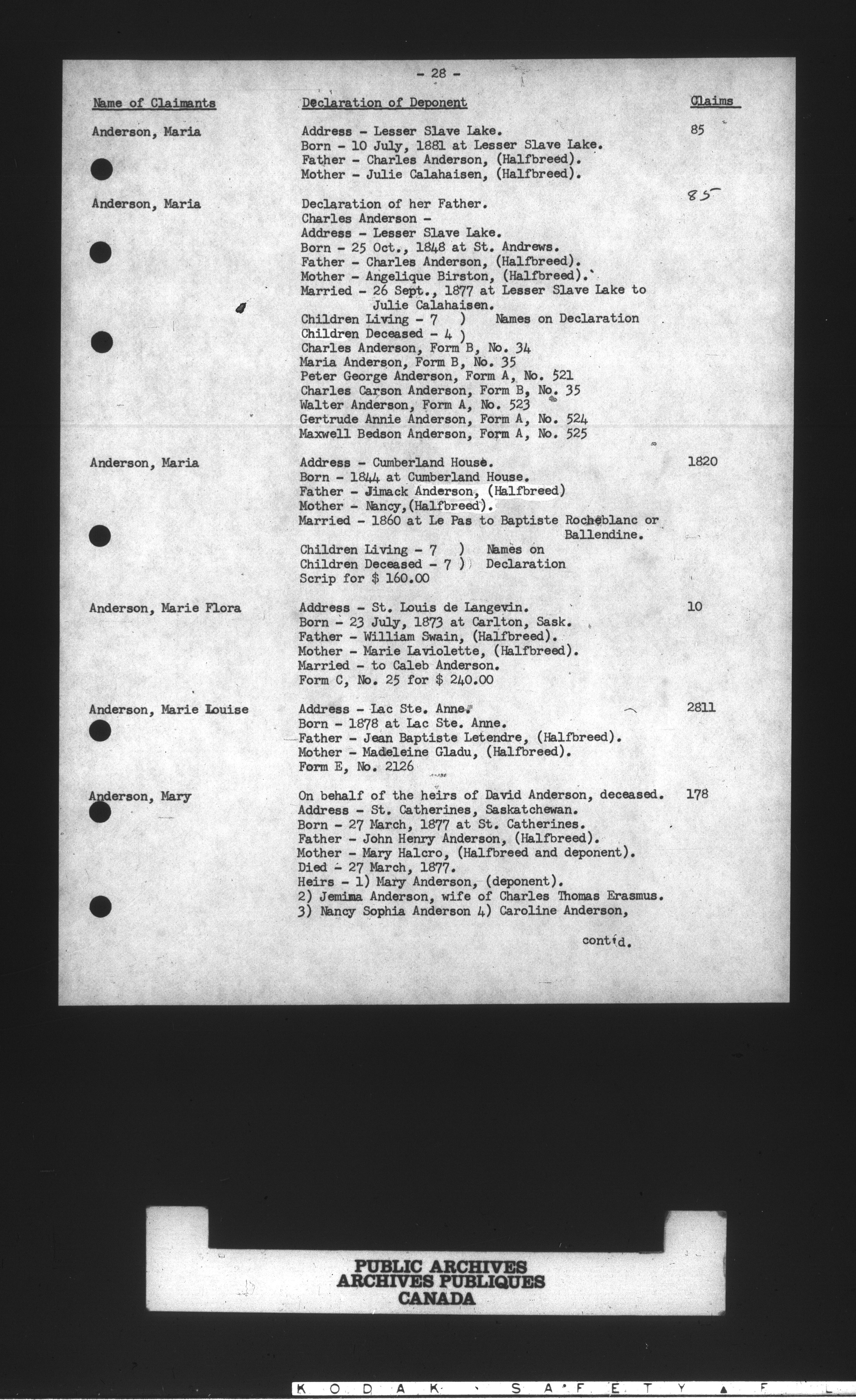 Department of the Interior, Dominion Lands Branch : North-West Territories Métis scrip applications : C-14943