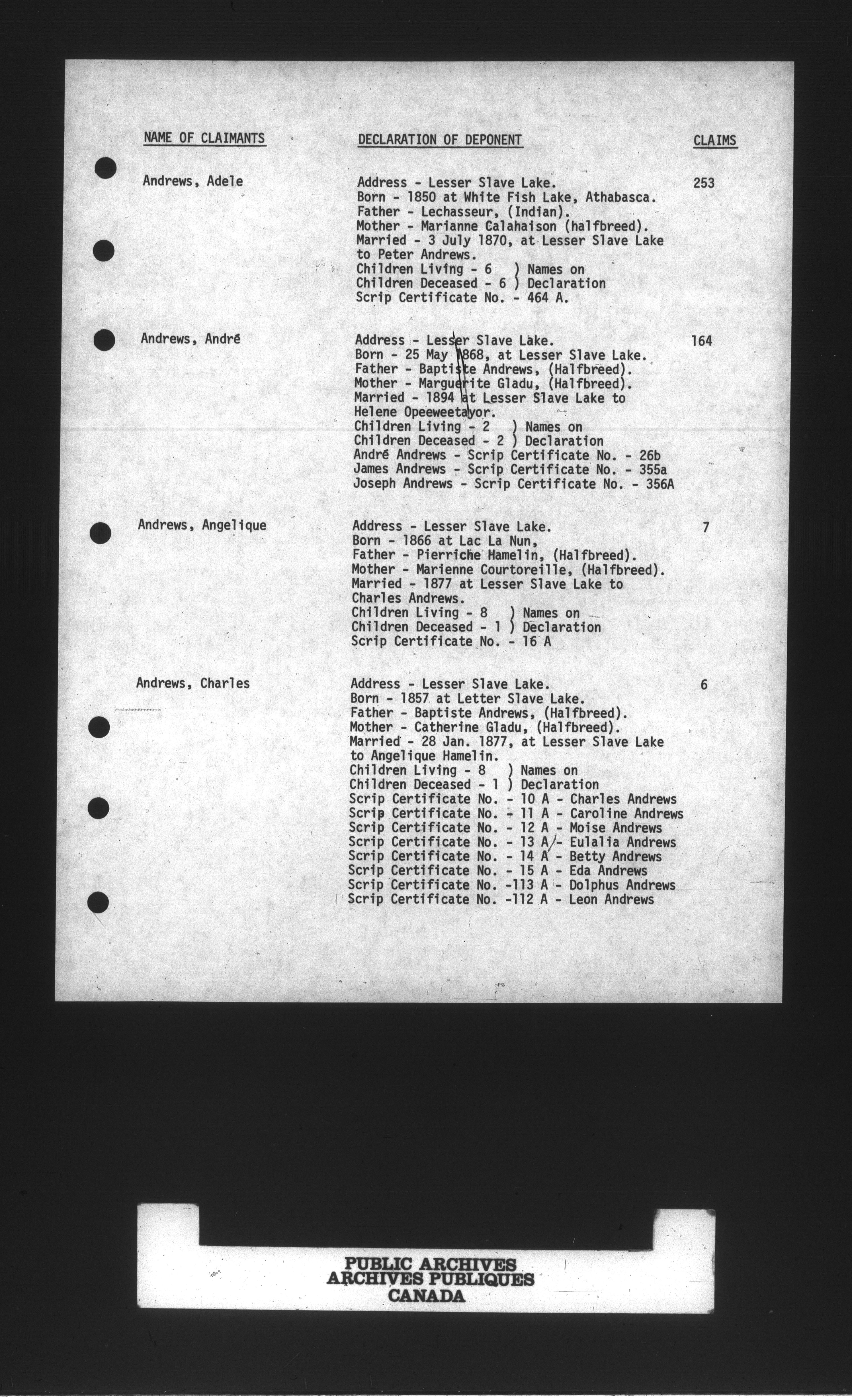 Department of the Interior, Dominion Lands Branch : North-West Territories Métis scrip applications : C-14943