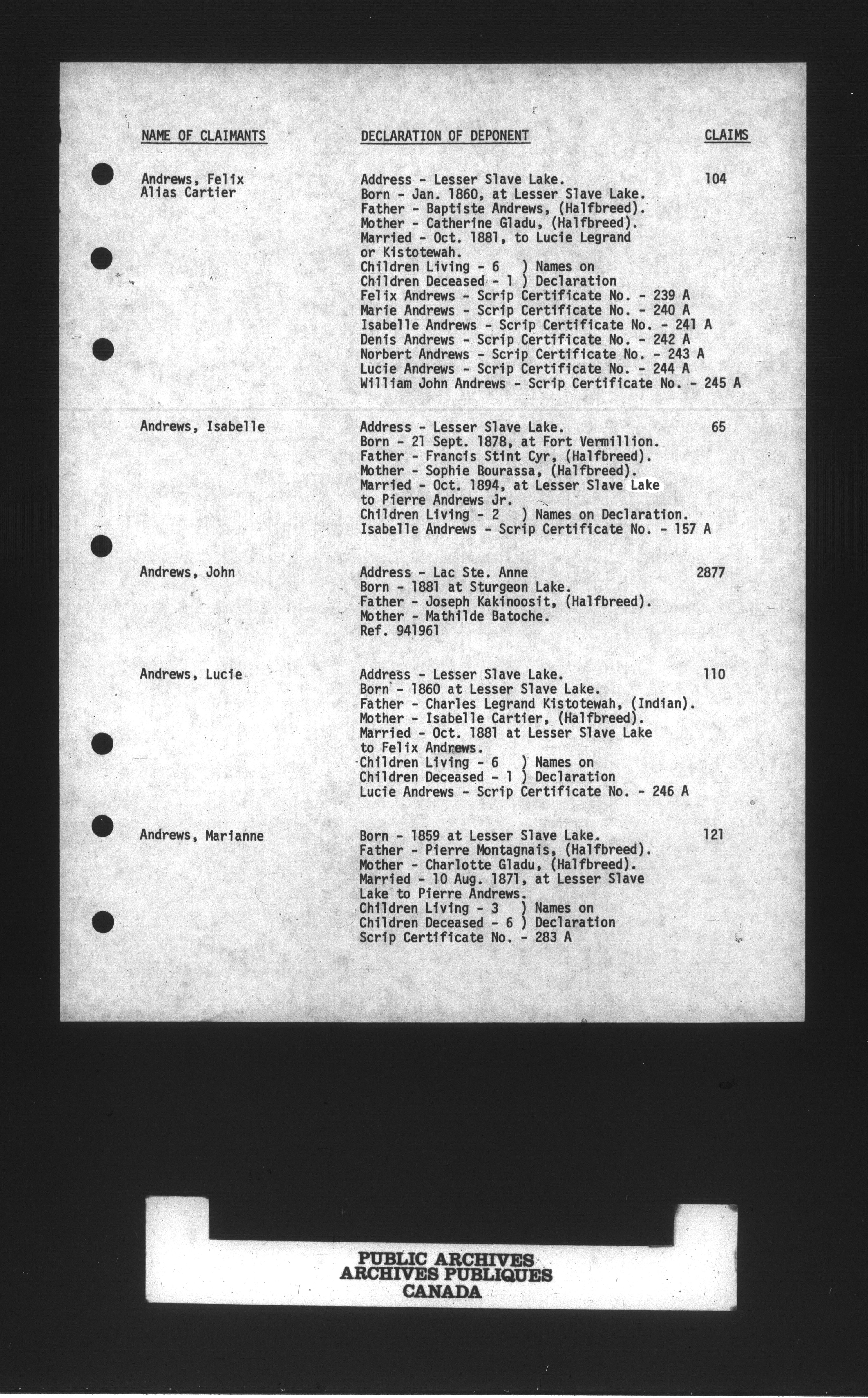 Department of the Interior, Dominion Lands Branch : North-West Territories Métis scrip applications - 14943