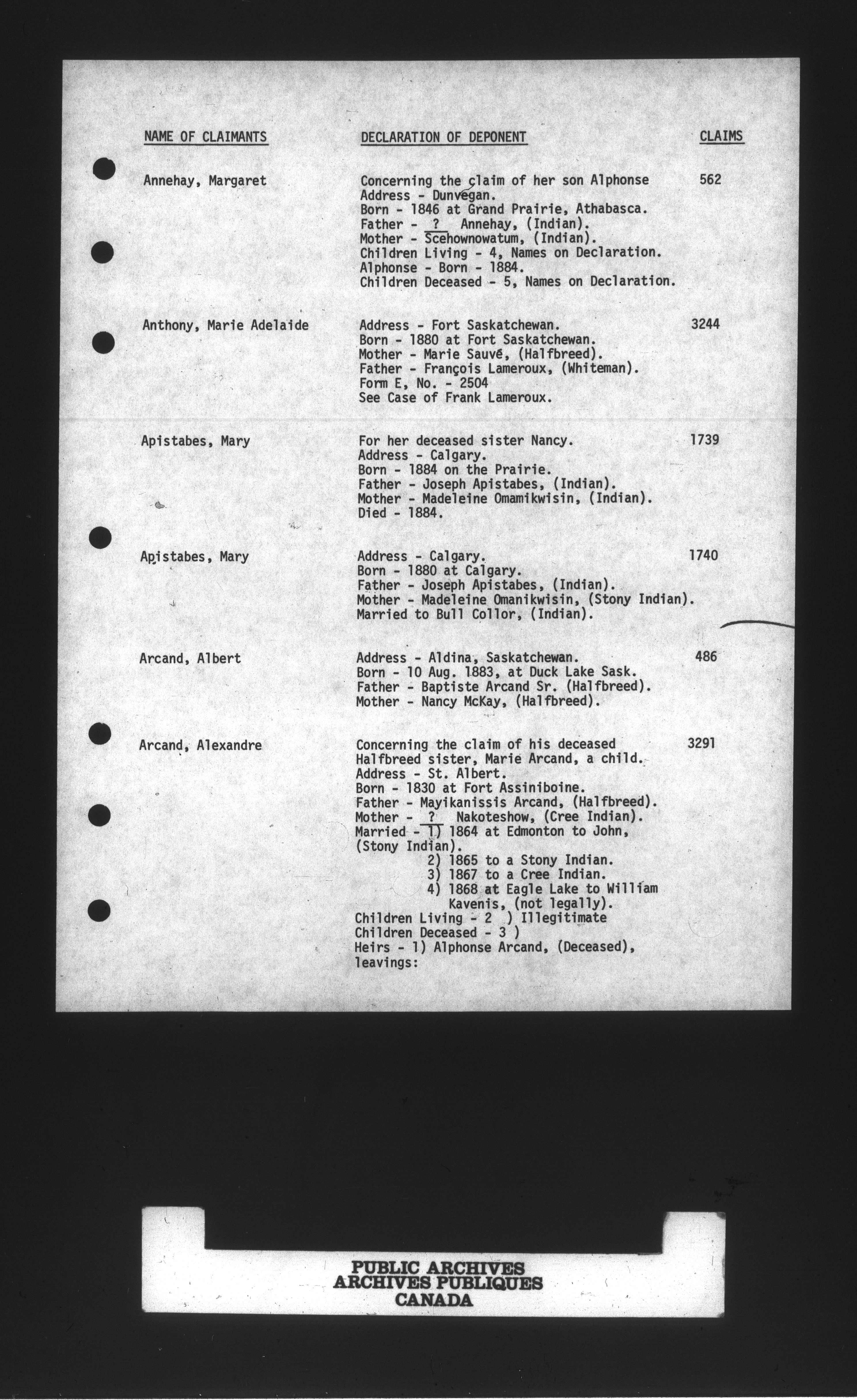 Department of the Interior, Dominion Lands Branch : North-West Territories Métis scrip applications - 14943
