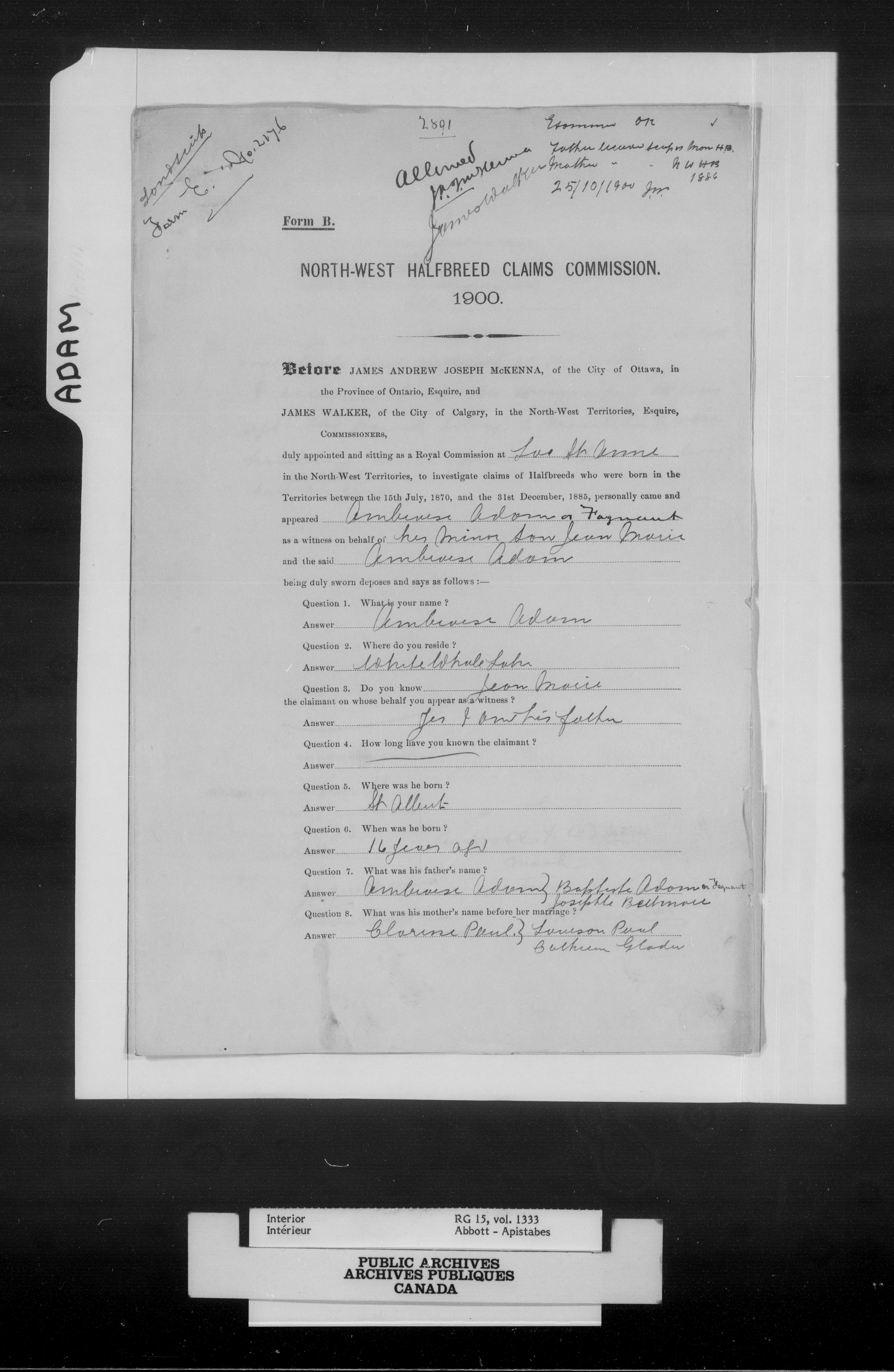 Department of the Interior, Dominion Lands Branch : North-West Territories Métis scrip applications - 14944
