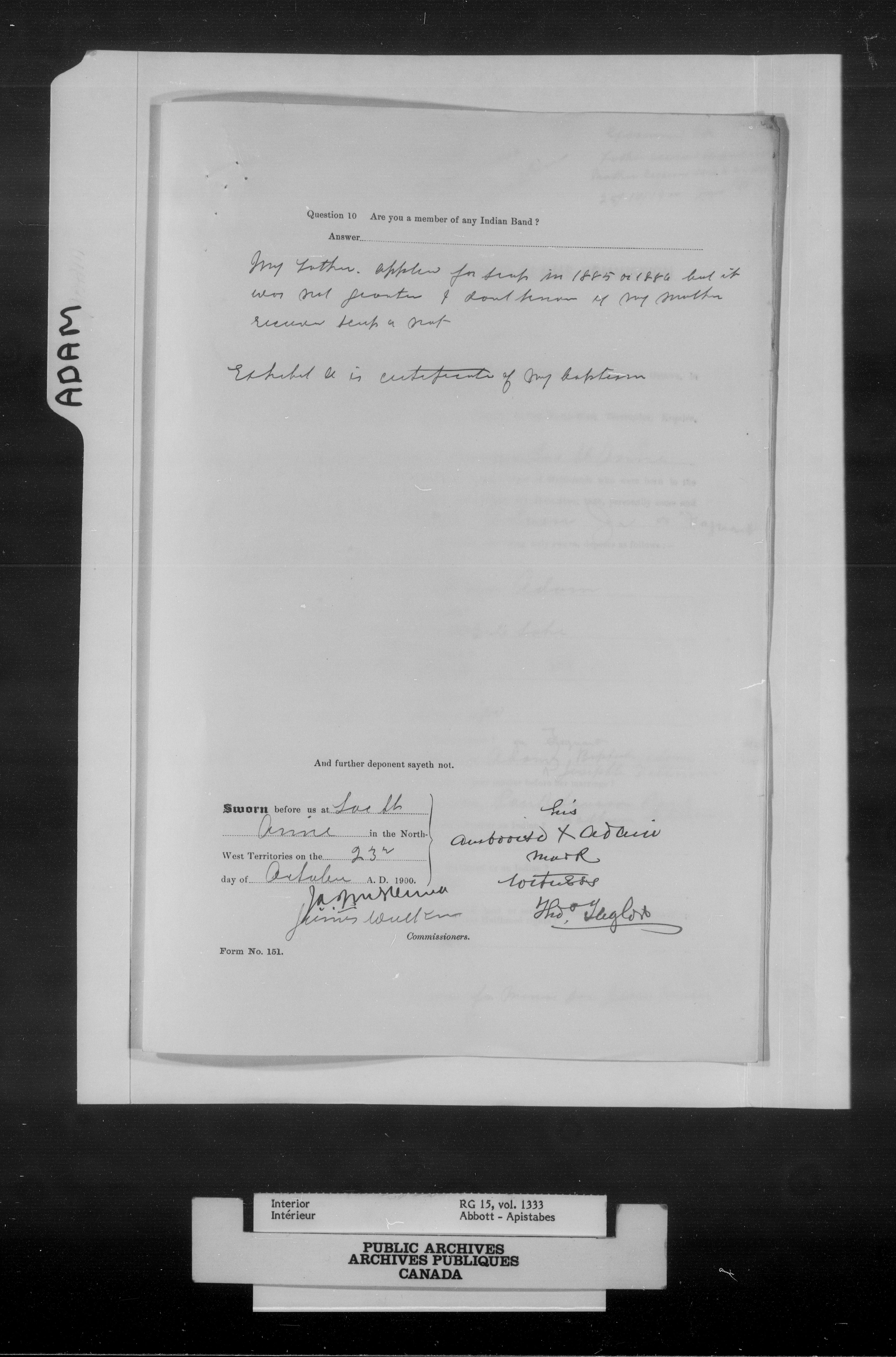 Department of the Interior, Dominion Lands Branch : North-West Territories Métis scrip applications - 14944