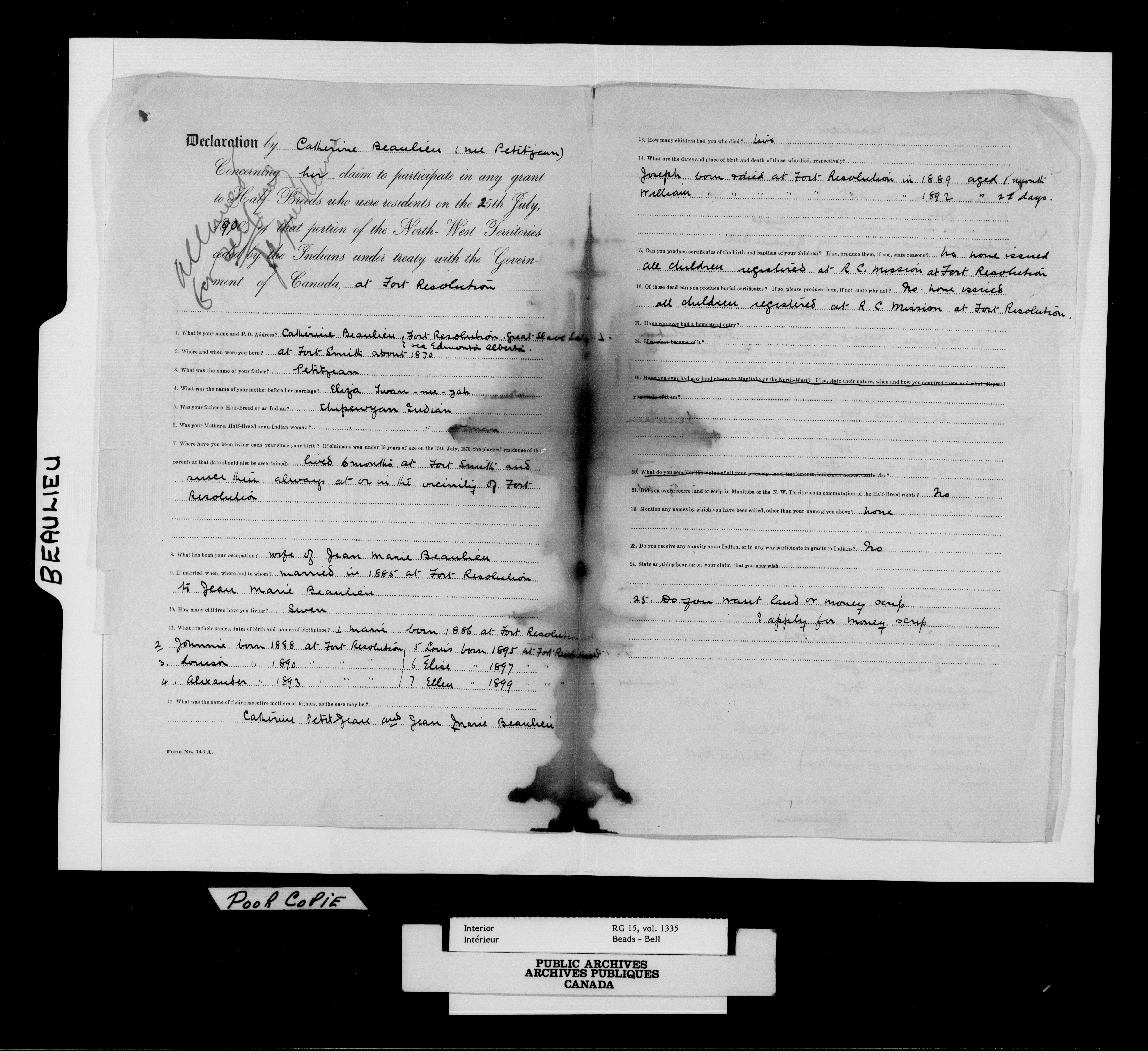 Department of the Interior, Dominion Lands Branch : North-West Territories Métis scrip applications - 14947