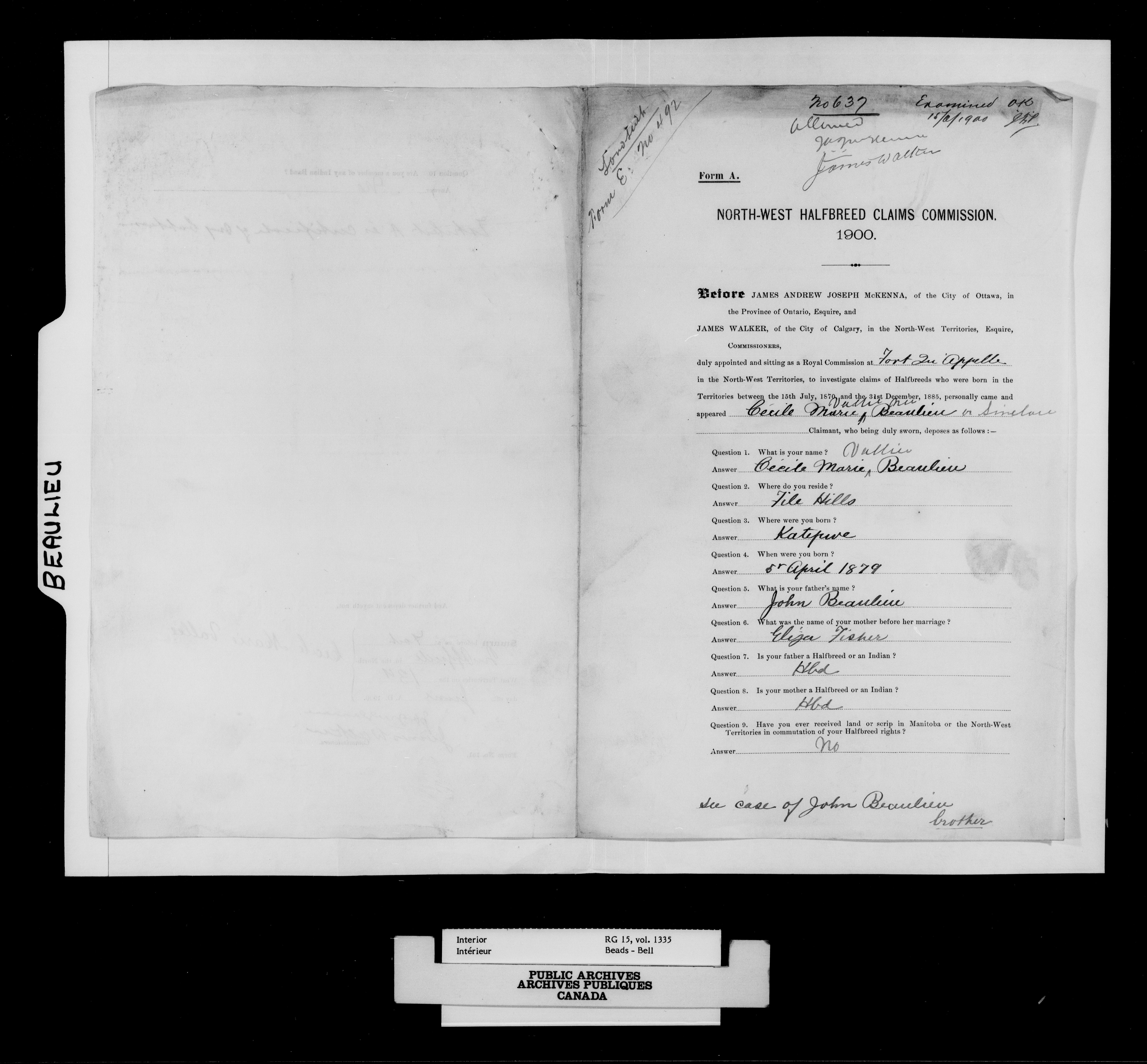 Department of the Interior, Dominion Lands Branch : North-West Territories Métis scrip applications - 14947