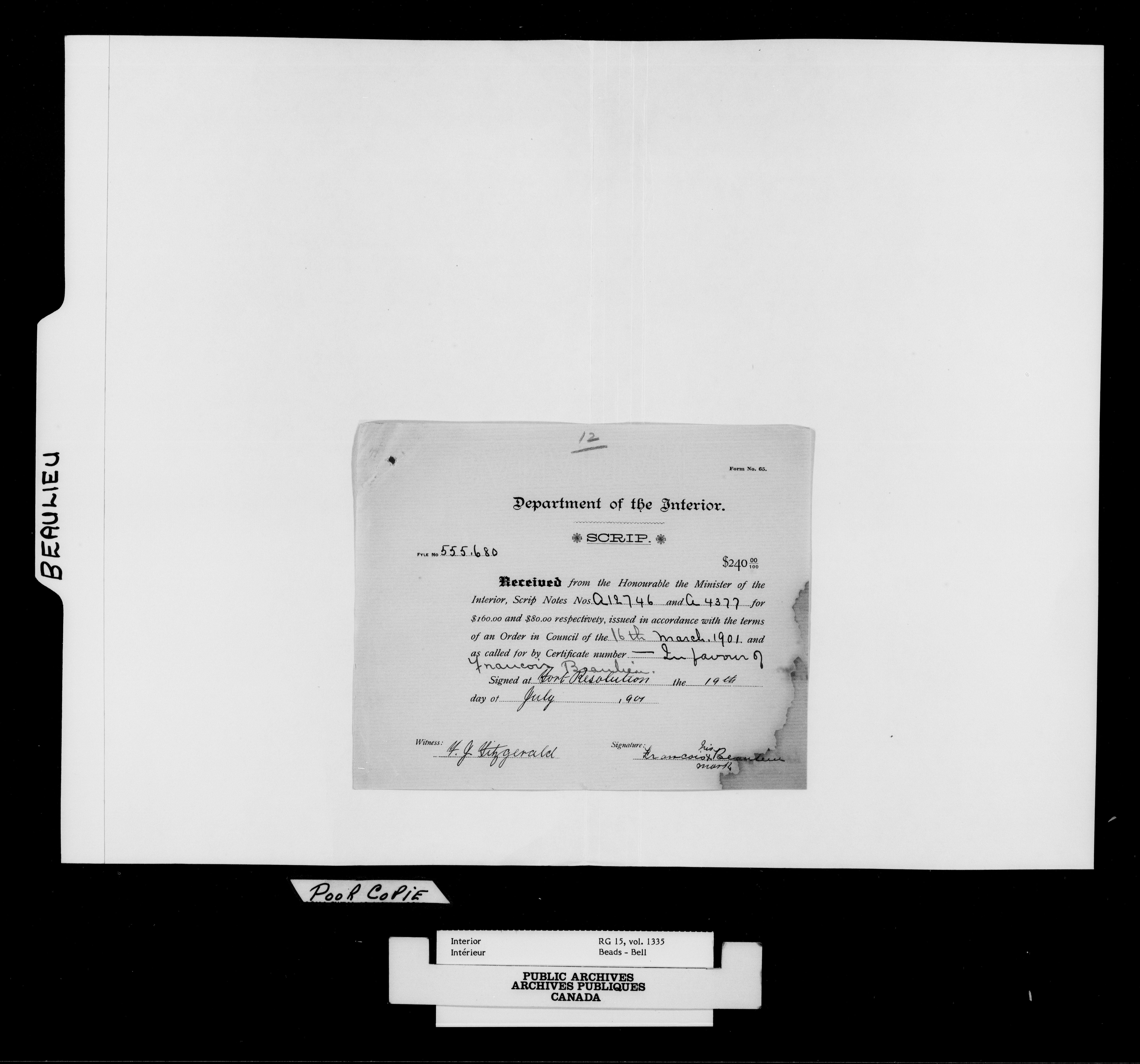Department of the Interior, Dominion Lands Branch : North-West Territories Métis scrip applications - 14947