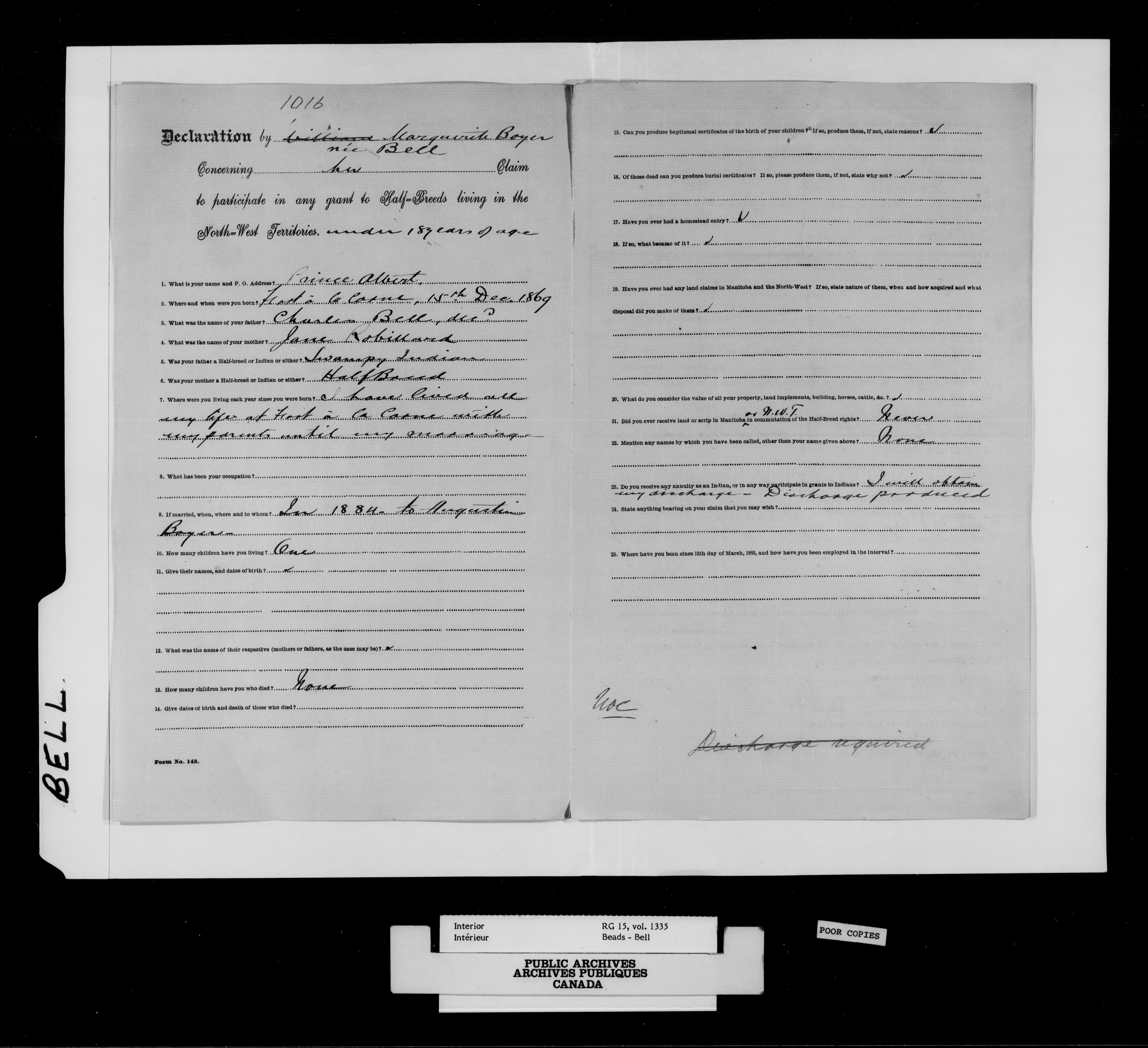 Department of the Interior, Dominion Lands Branch : North-West Territories Métis scrip applications - 14948