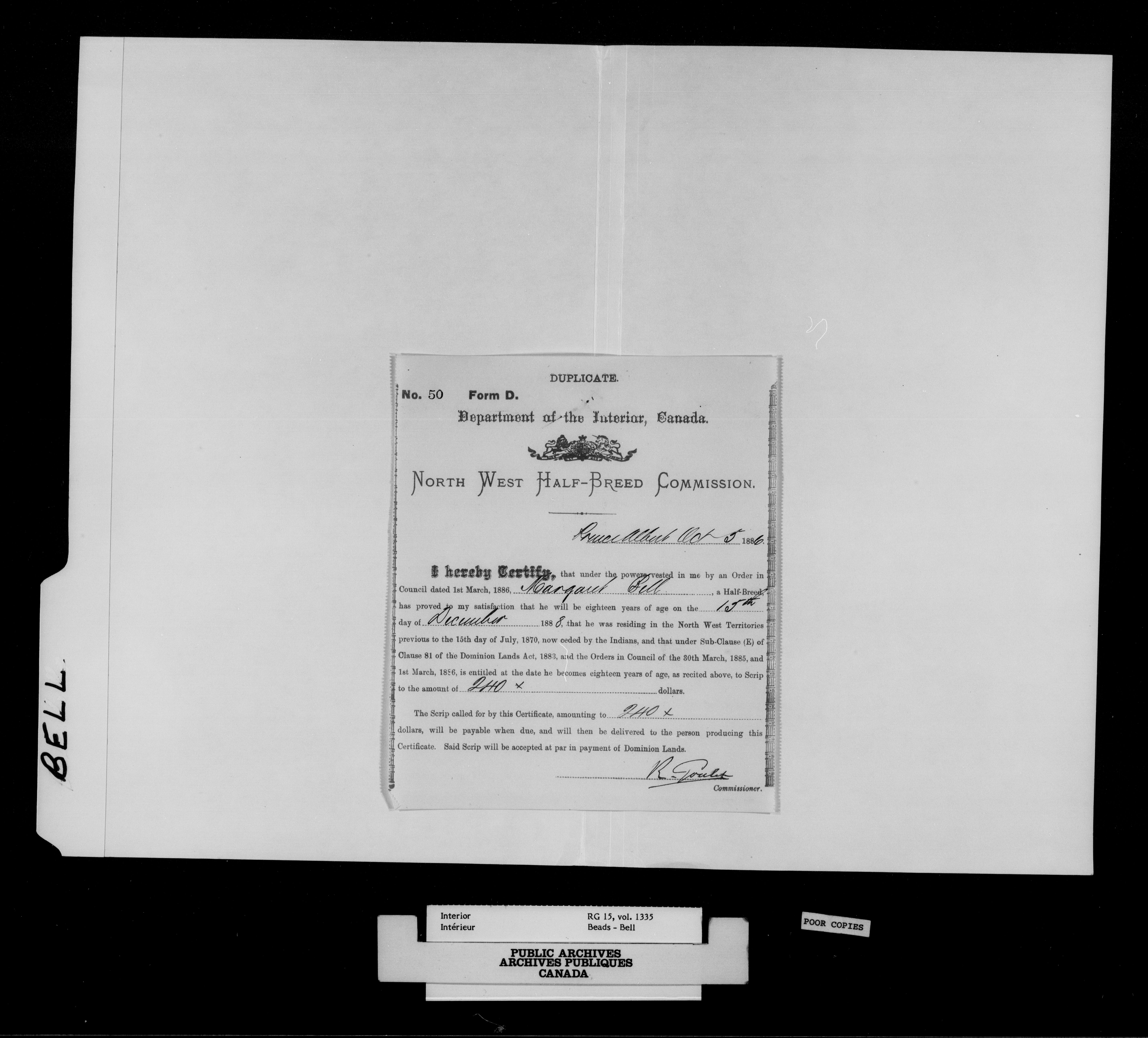 Department of the Interior, Dominion Lands Branch : North-West Territories Métis scrip applications - 14948