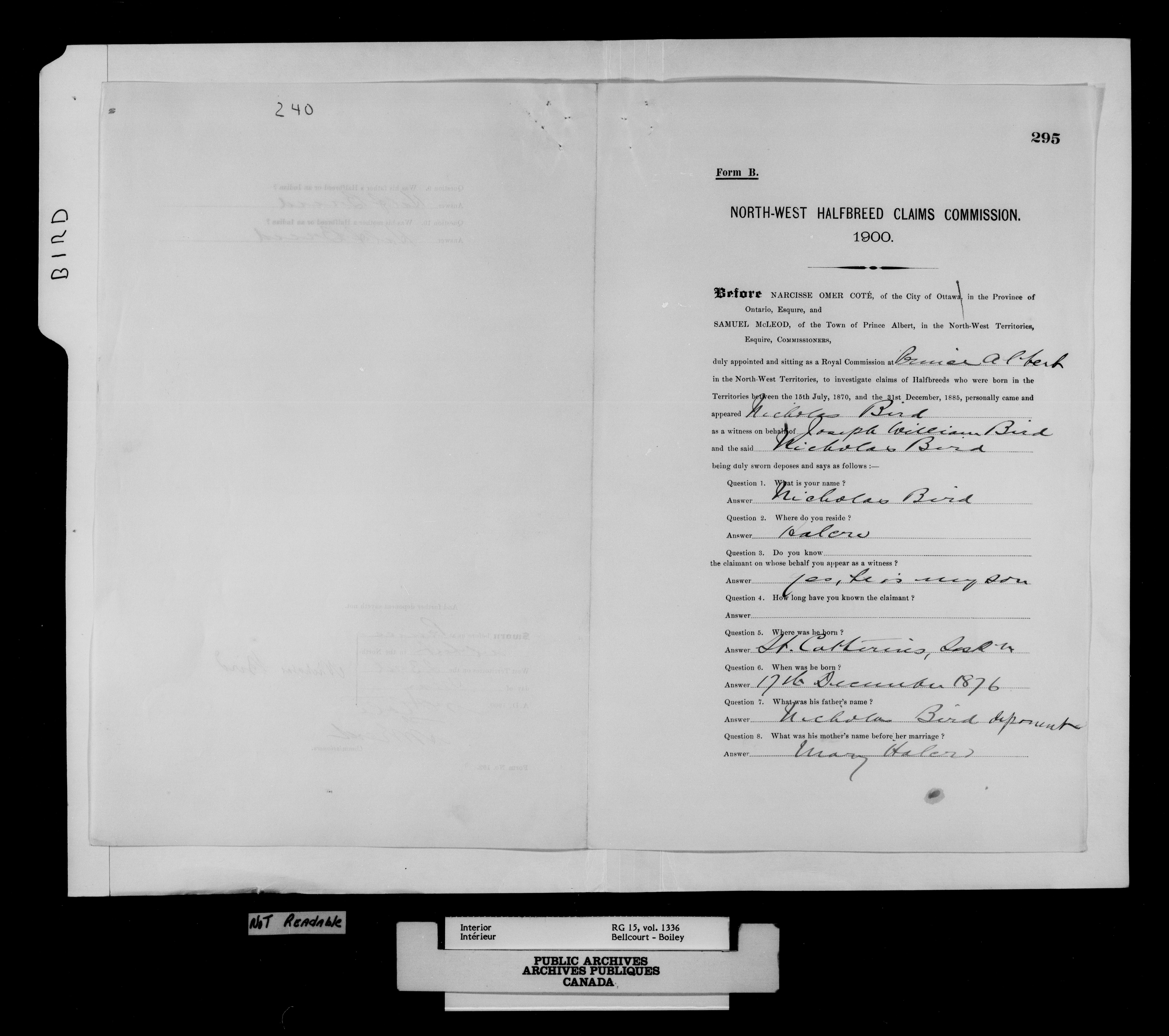 Department of the Interior, Dominion Lands Branch : North-West Territories Métis scrip applications : C-14950