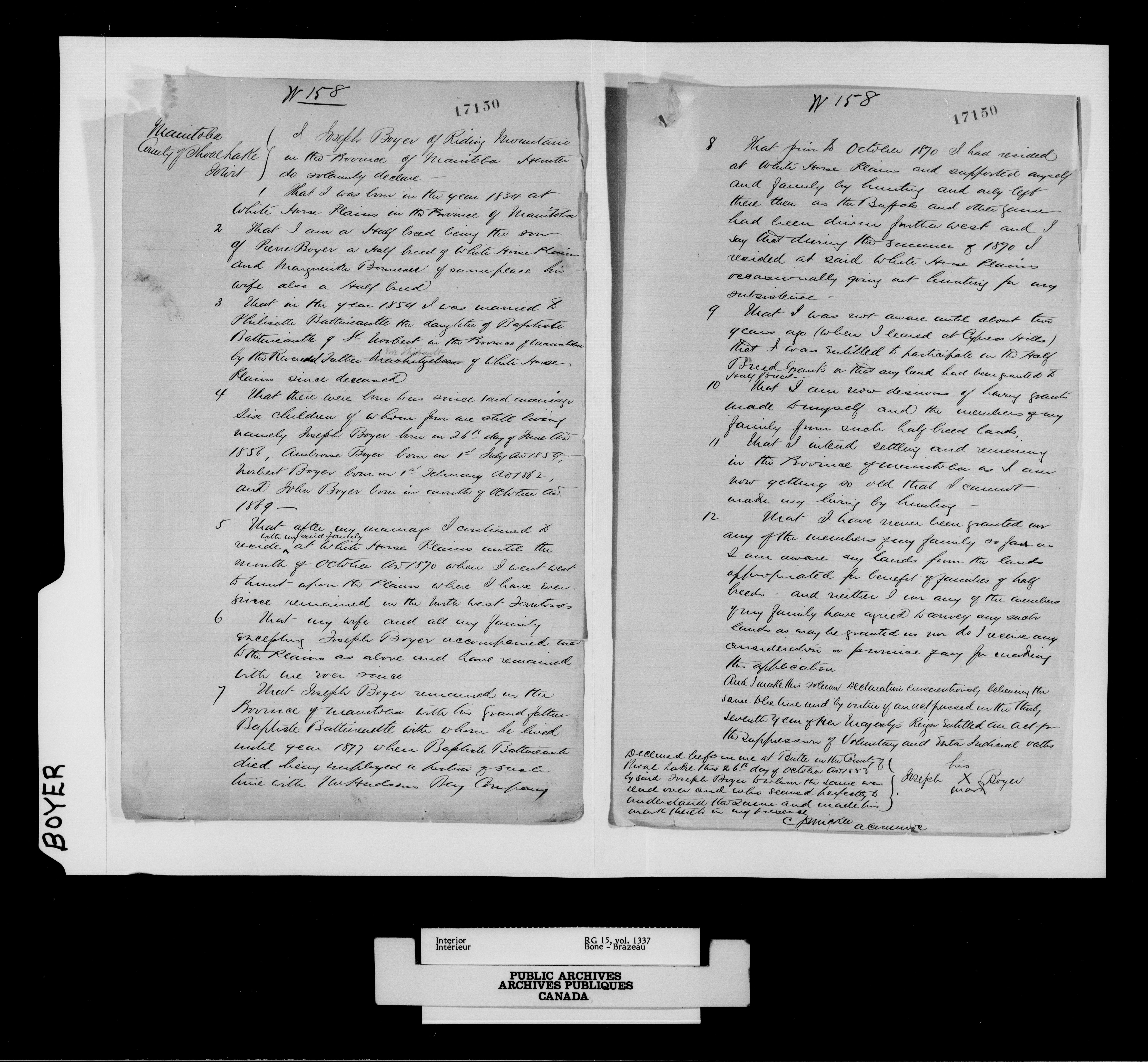 Department of the Interior, Dominion Lands Branch : North-West Territories Métis scrip applications - 14952