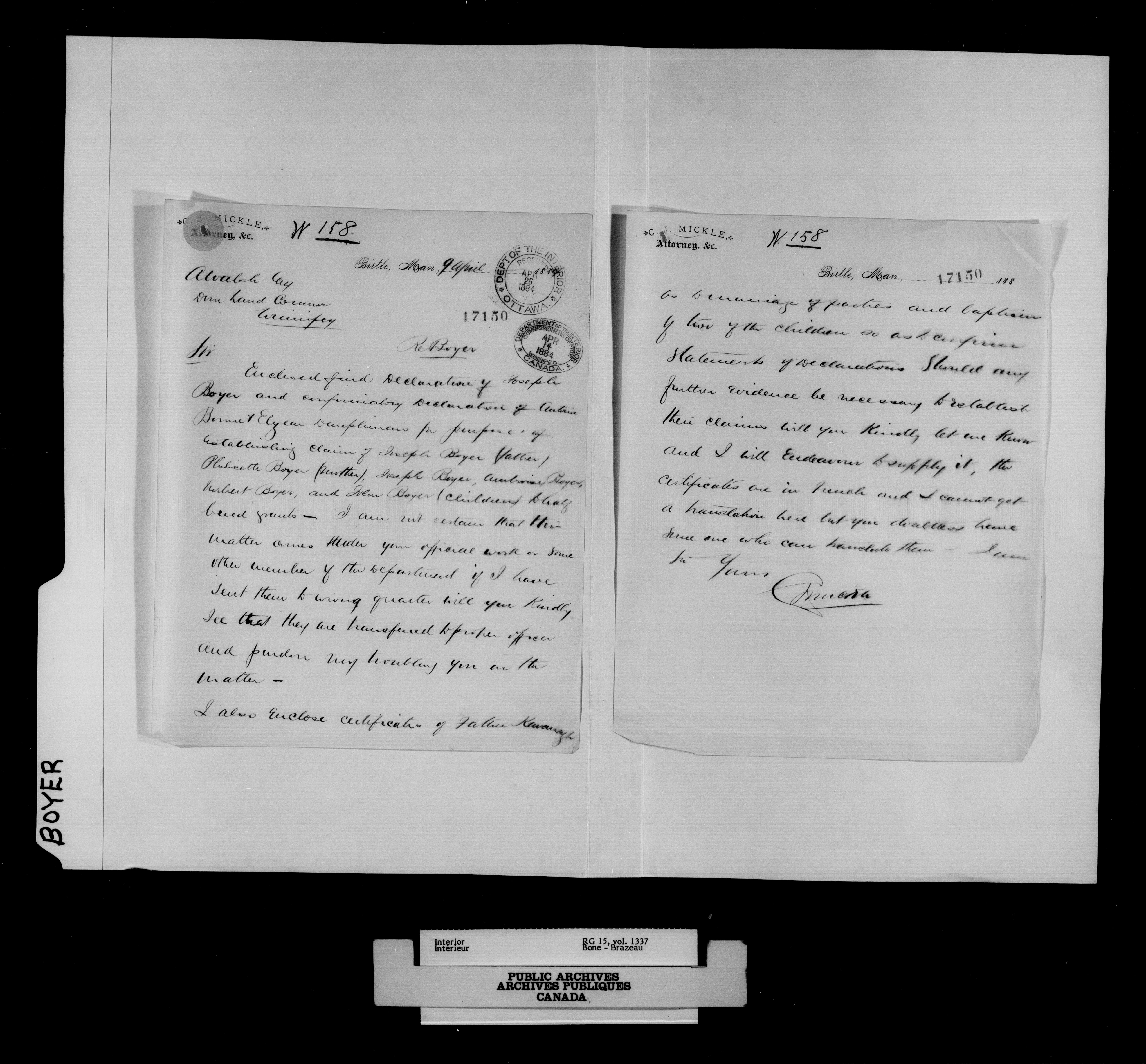 Department of the Interior, Dominion Lands Branch : North-West Territories Métis scrip applications : C-14952