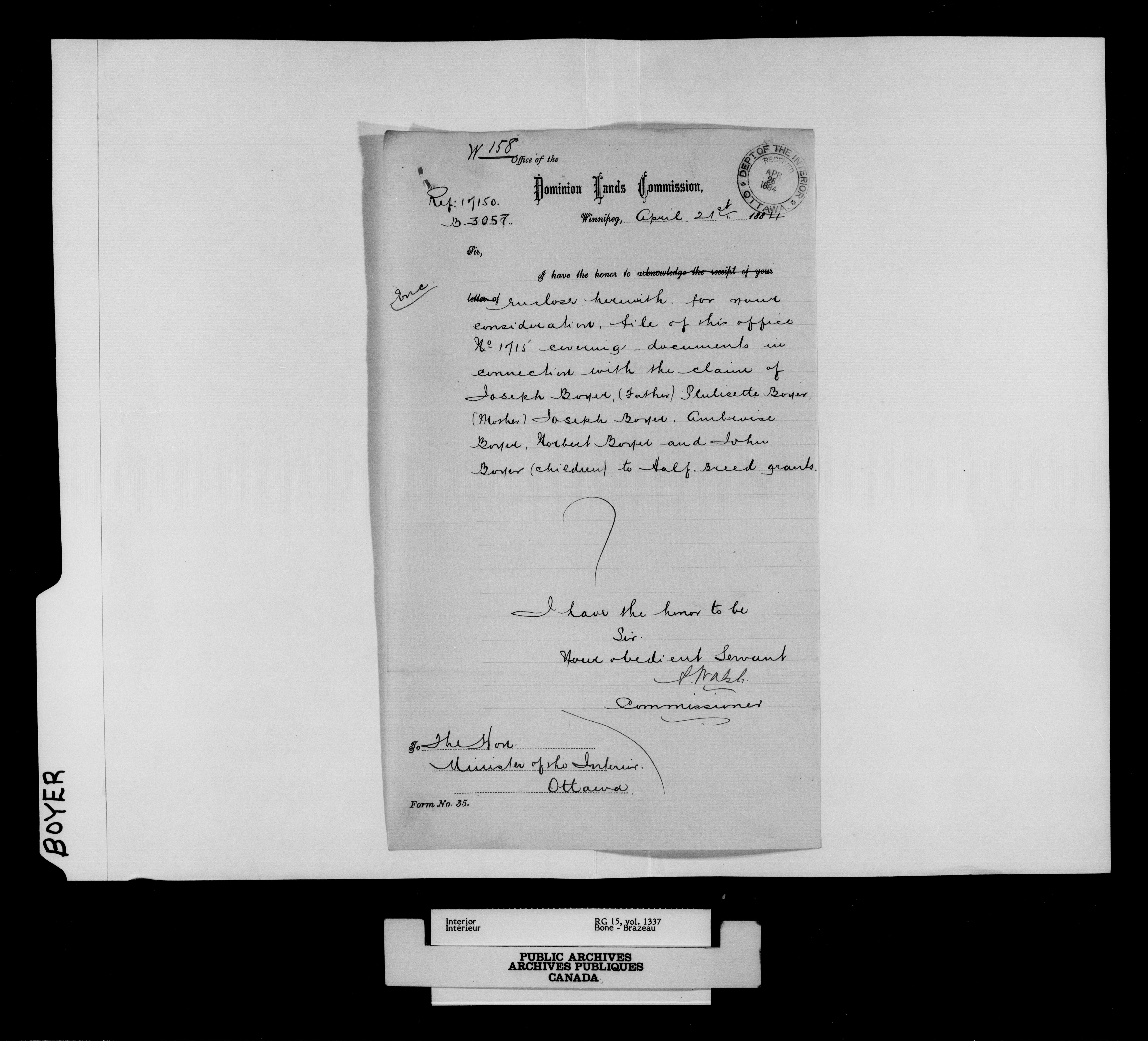 Department of the Interior, Dominion Lands Branch : North-West Territories Métis scrip applications - 14952