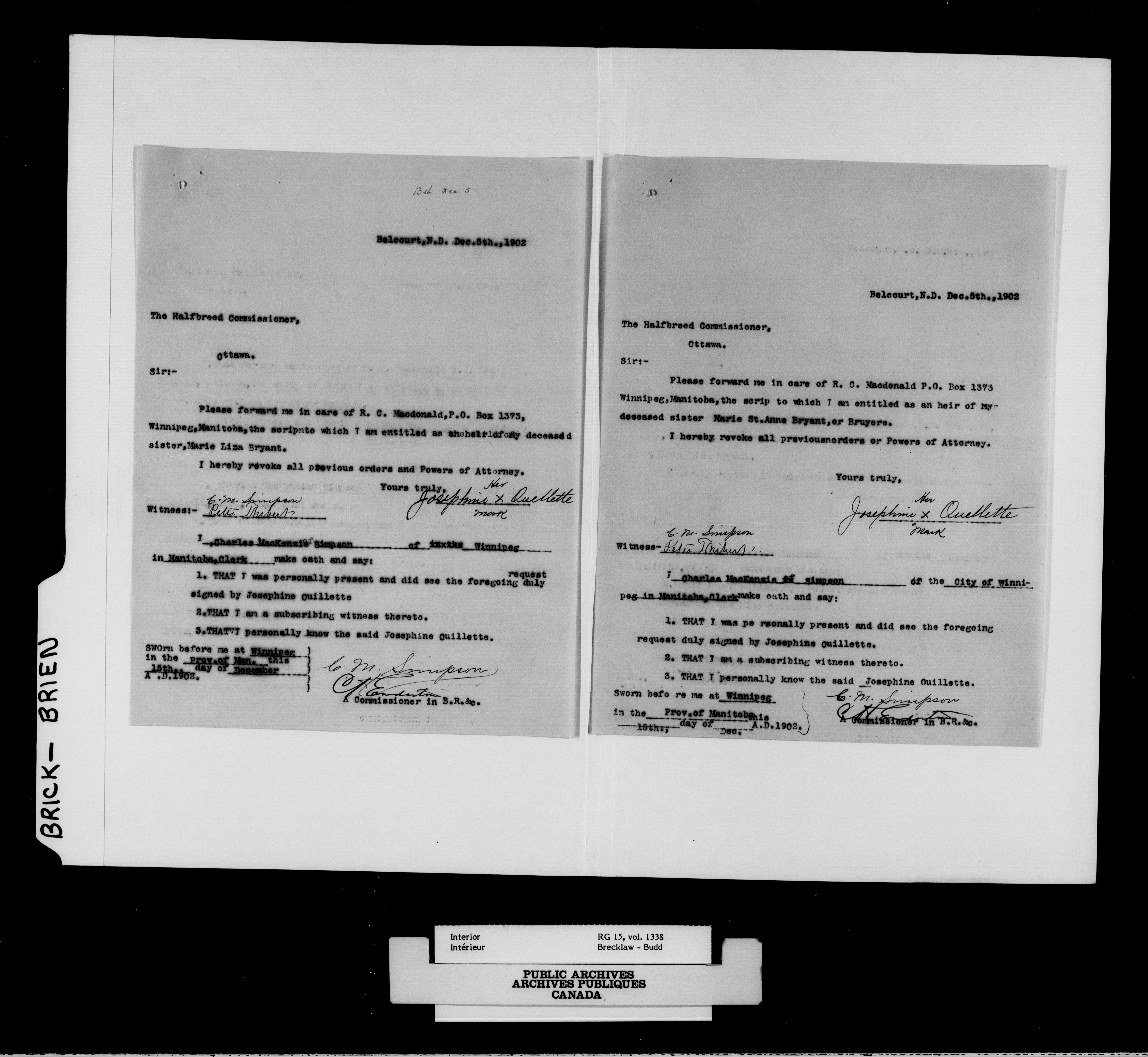 Department of the Interior, Dominion Lands Branch : North-West Territories Métis scrip applications - 14953