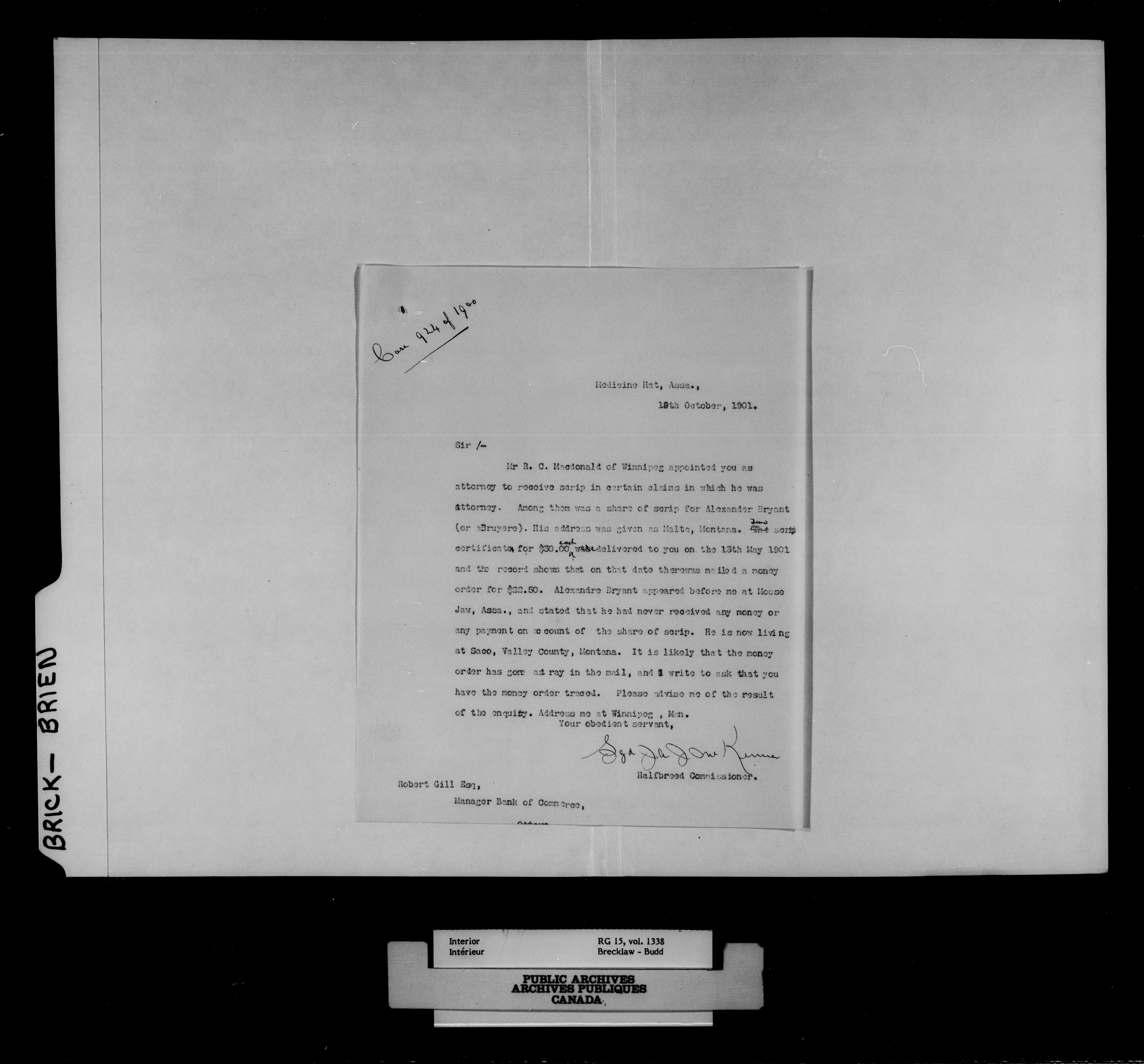 Department of the Interior, Dominion Lands Branch : North-West Territories Métis scrip applications : C-14953