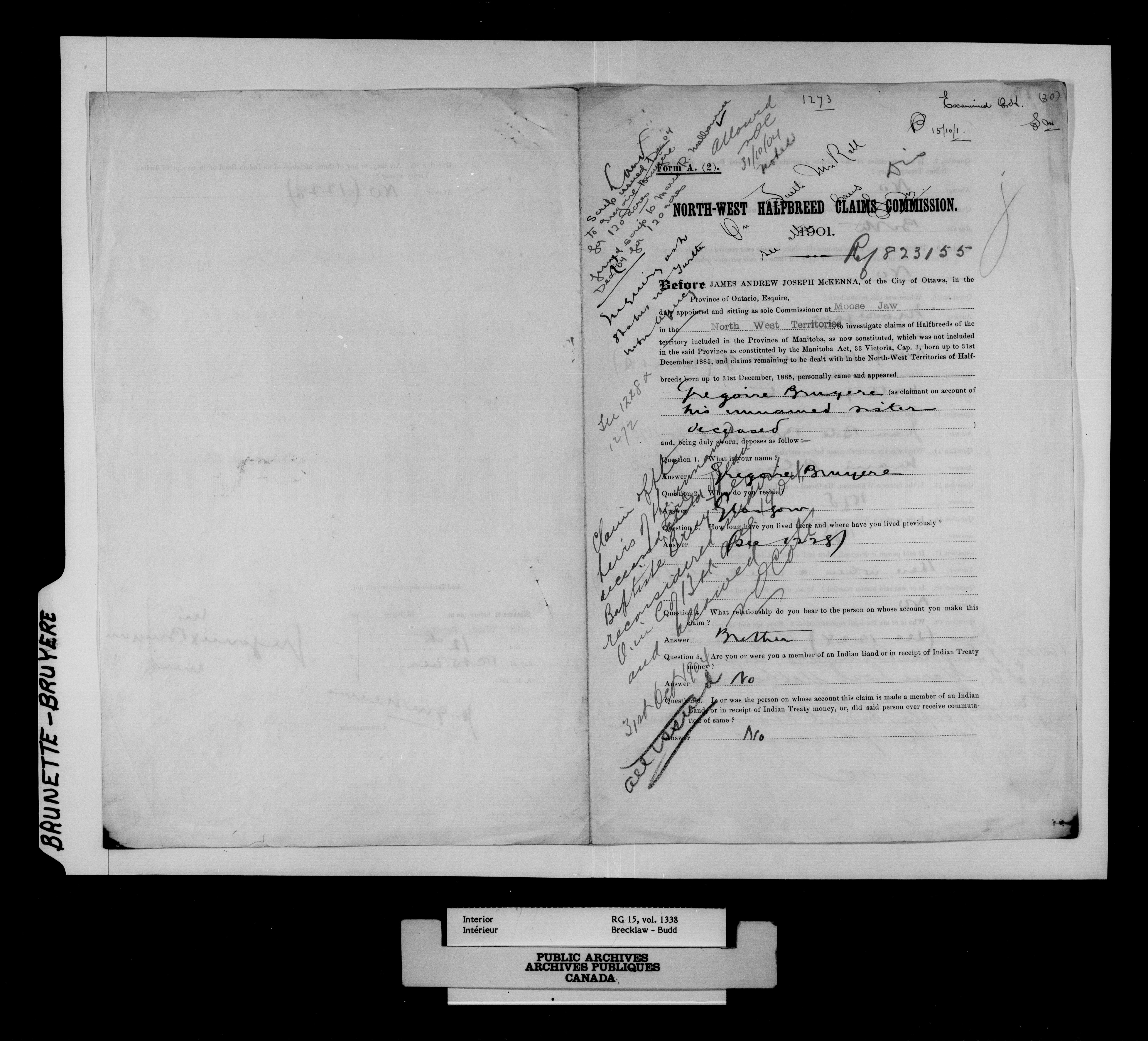 Department of the Interior, Dominion Lands Branch : North-West Territories Métis scrip applications - 14953