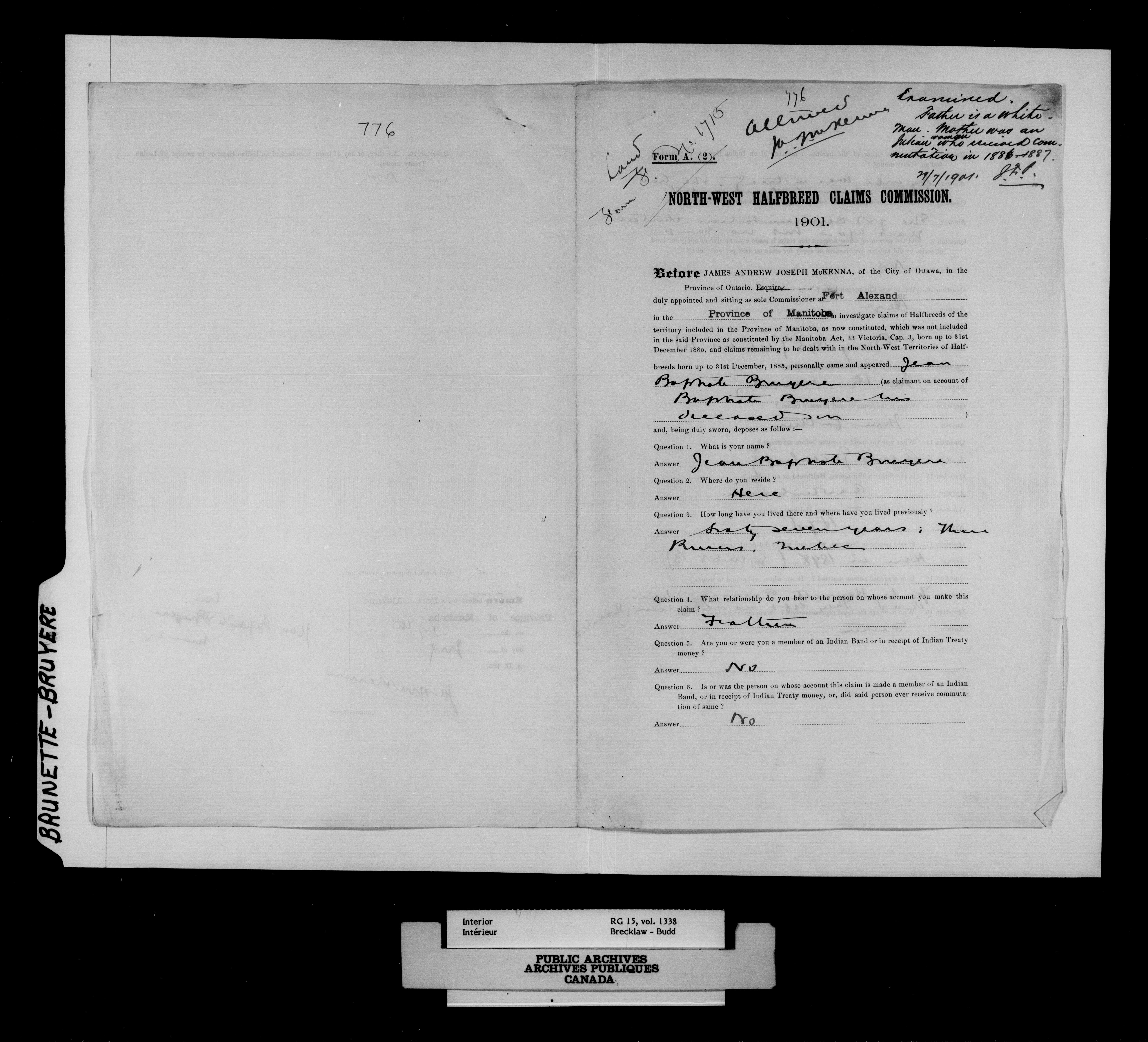 Department of the Interior, Dominion Lands Branch : North-West Territories Métis scrip applications - 14953