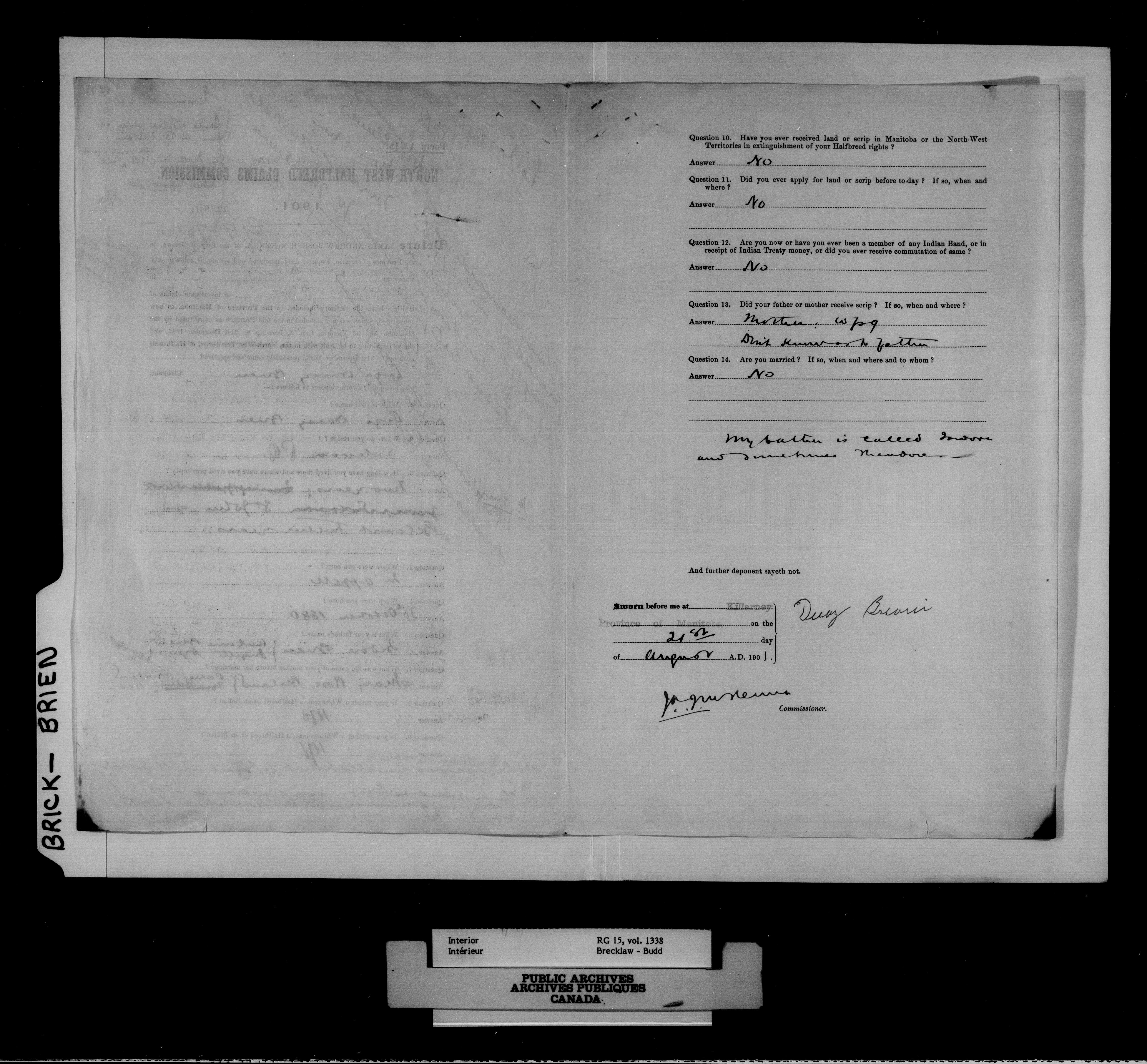 Department of the Interior, Dominion Lands Branch : North-West Territories Métis scrip applications : C-14953