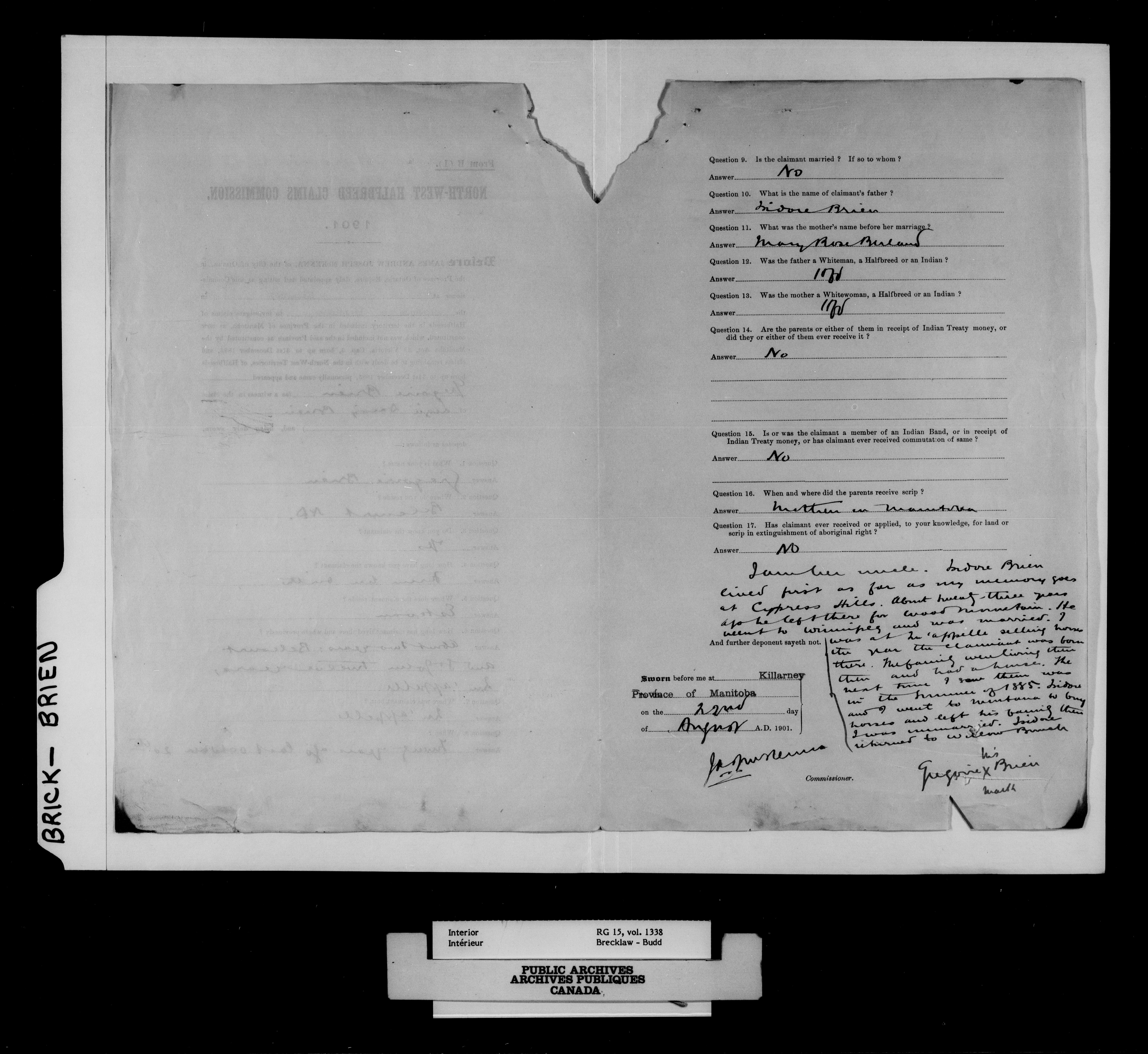 Department of the Interior, Dominion Lands Branch : North-West Territories Métis scrip applications : C-14953