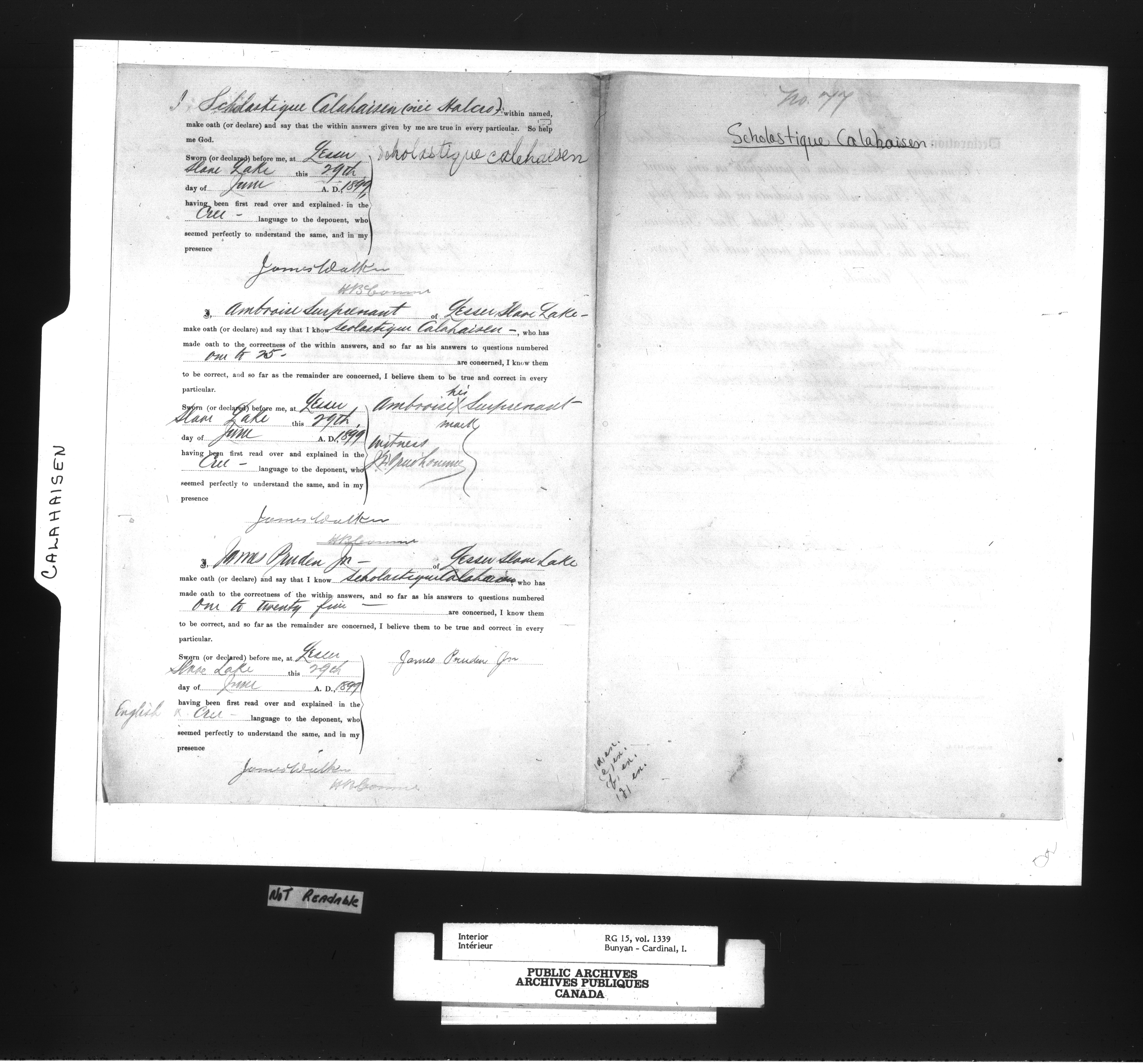 Department of the Interior, Dominion Lands Branch : North-West Territories Métis scrip applications - 14954