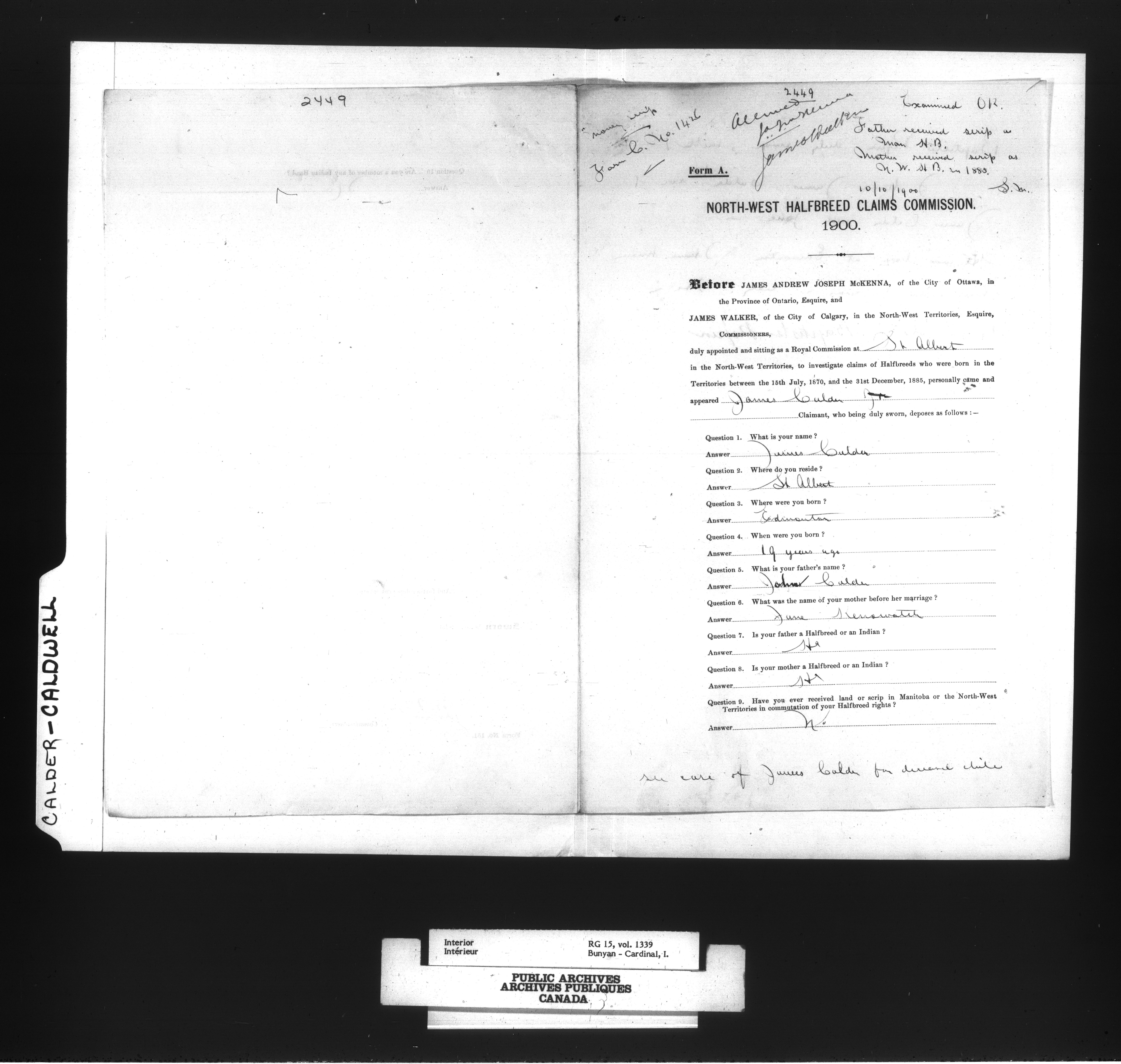 Department of the Interior, Dominion Lands Branch : North-West Territories Métis scrip applications - 14954