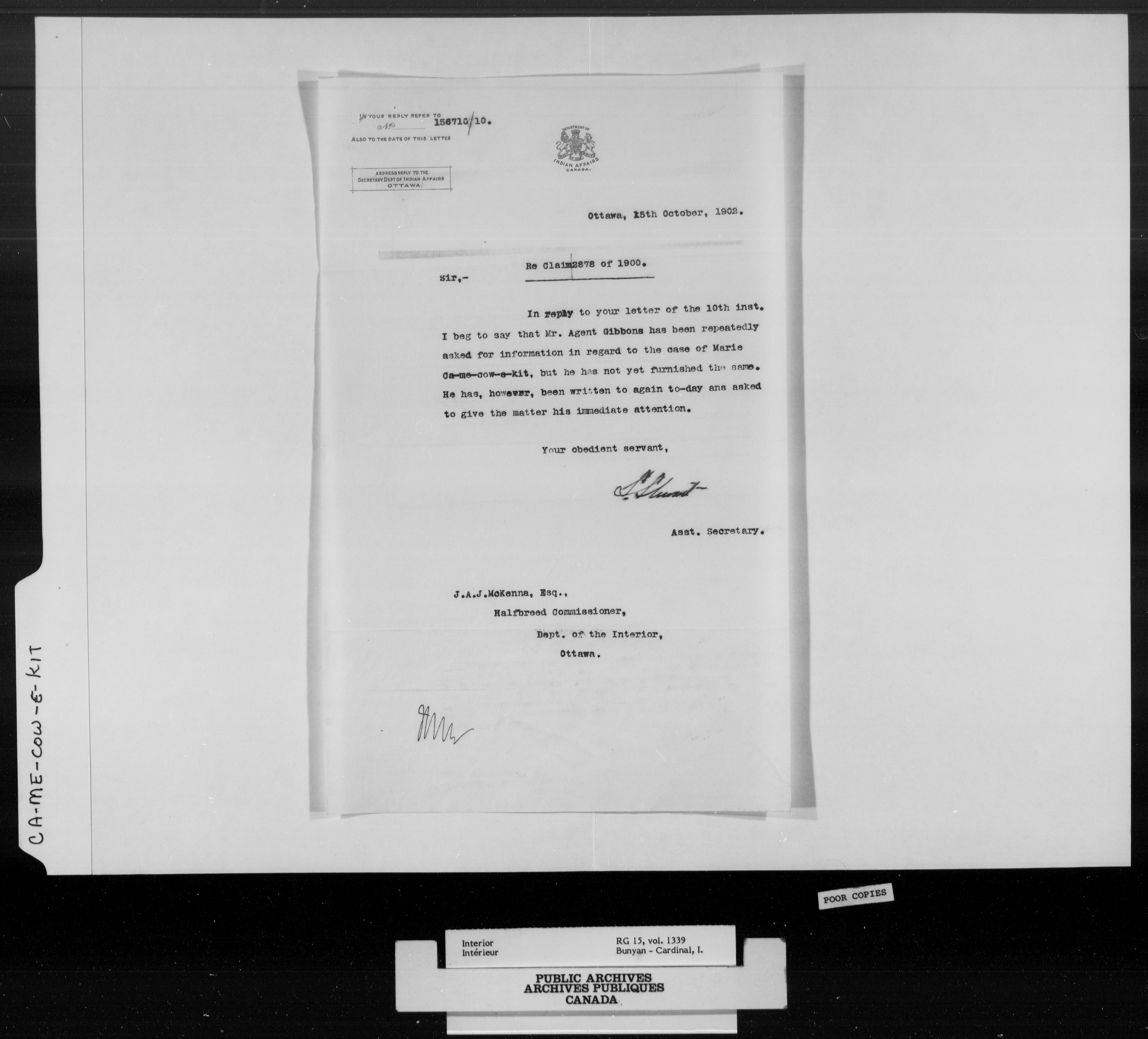Department of the Interior, Dominion Lands Branch : North-West Territories Métis scrip applications : C-14955