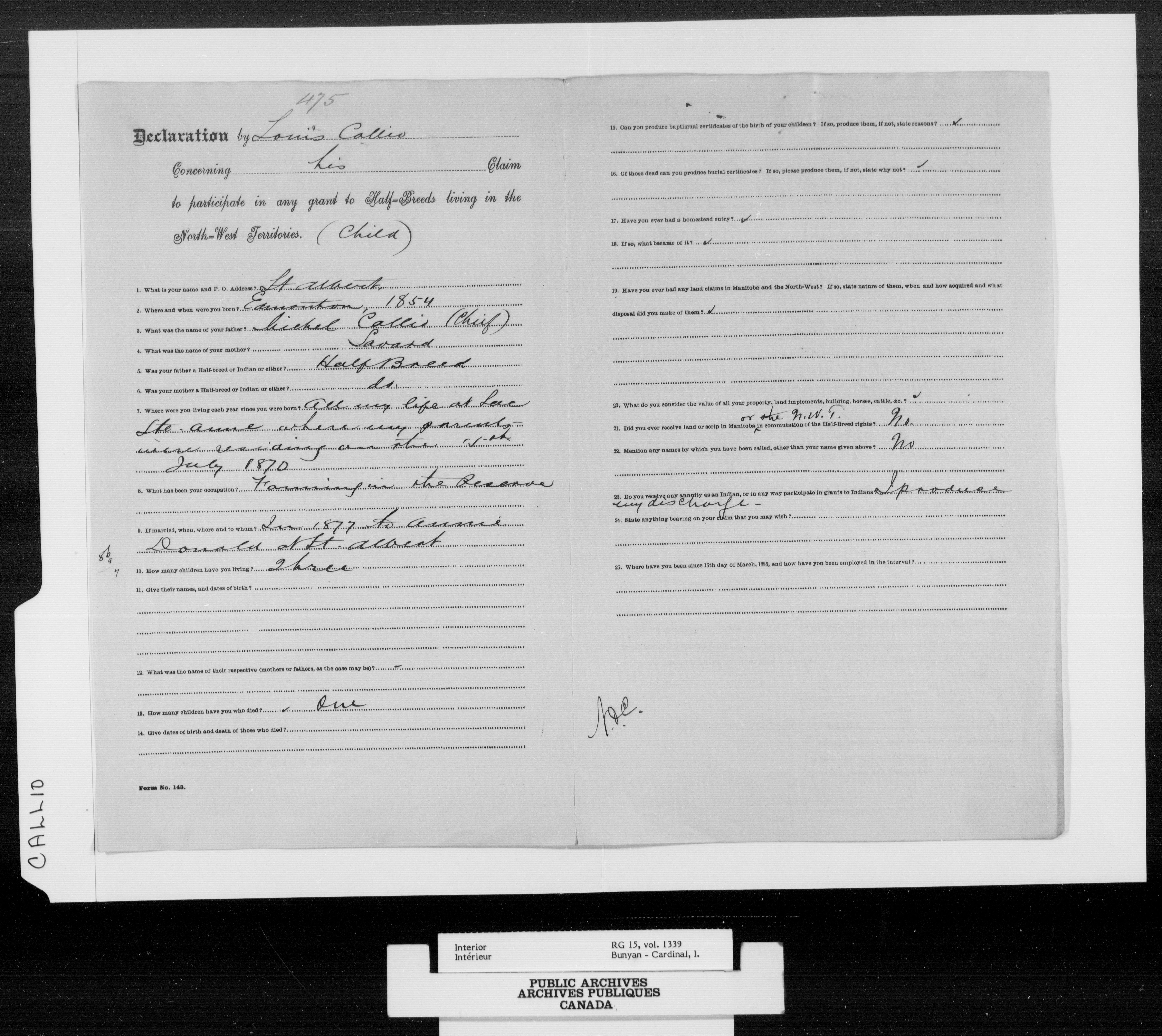 Department of the Interior, Dominion Lands Branch : North-West Territories Métis scrip applications - 14955
