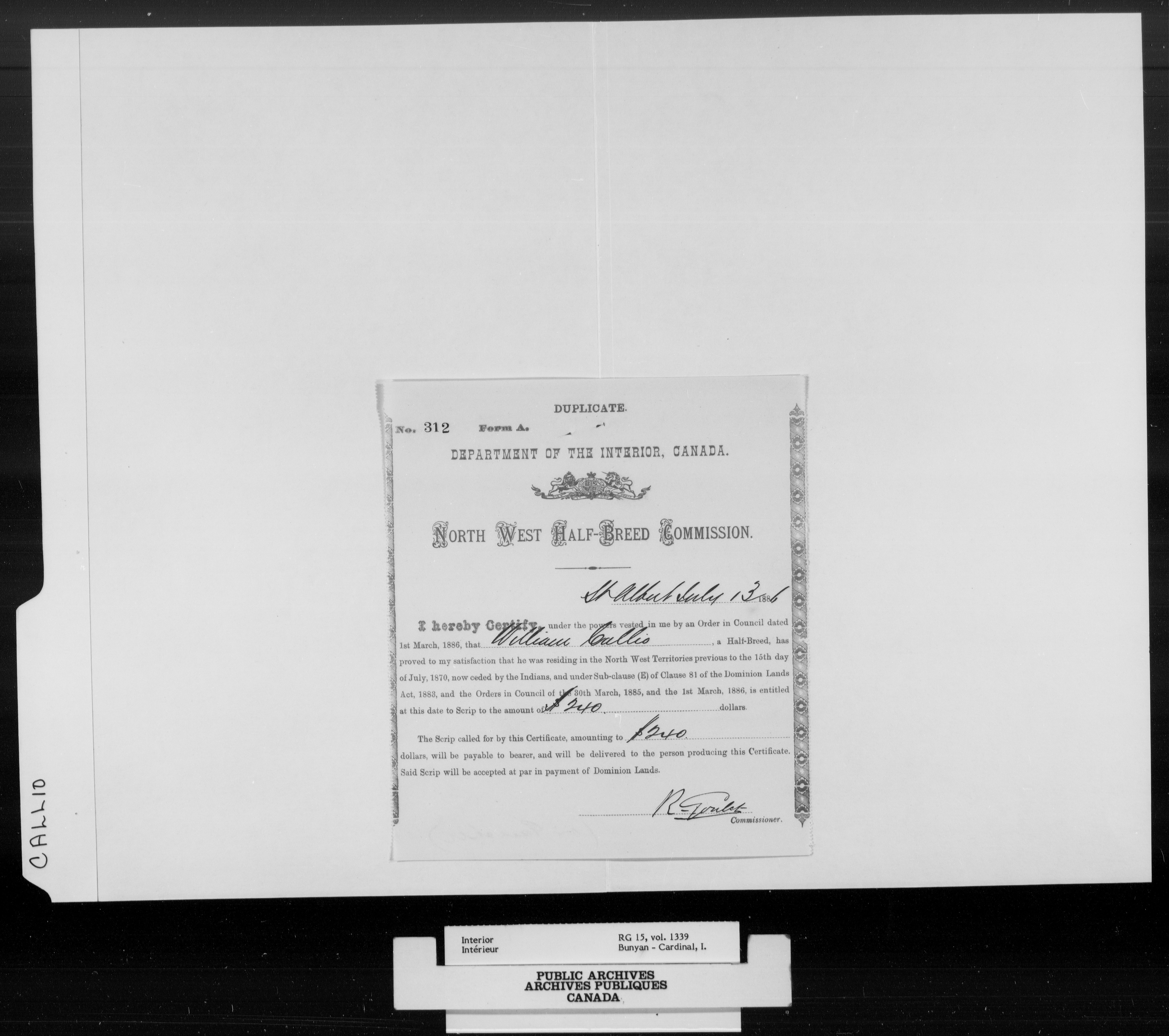 Department of the Interior, Dominion Lands Branch : North-West Territories Métis scrip applications - 14955