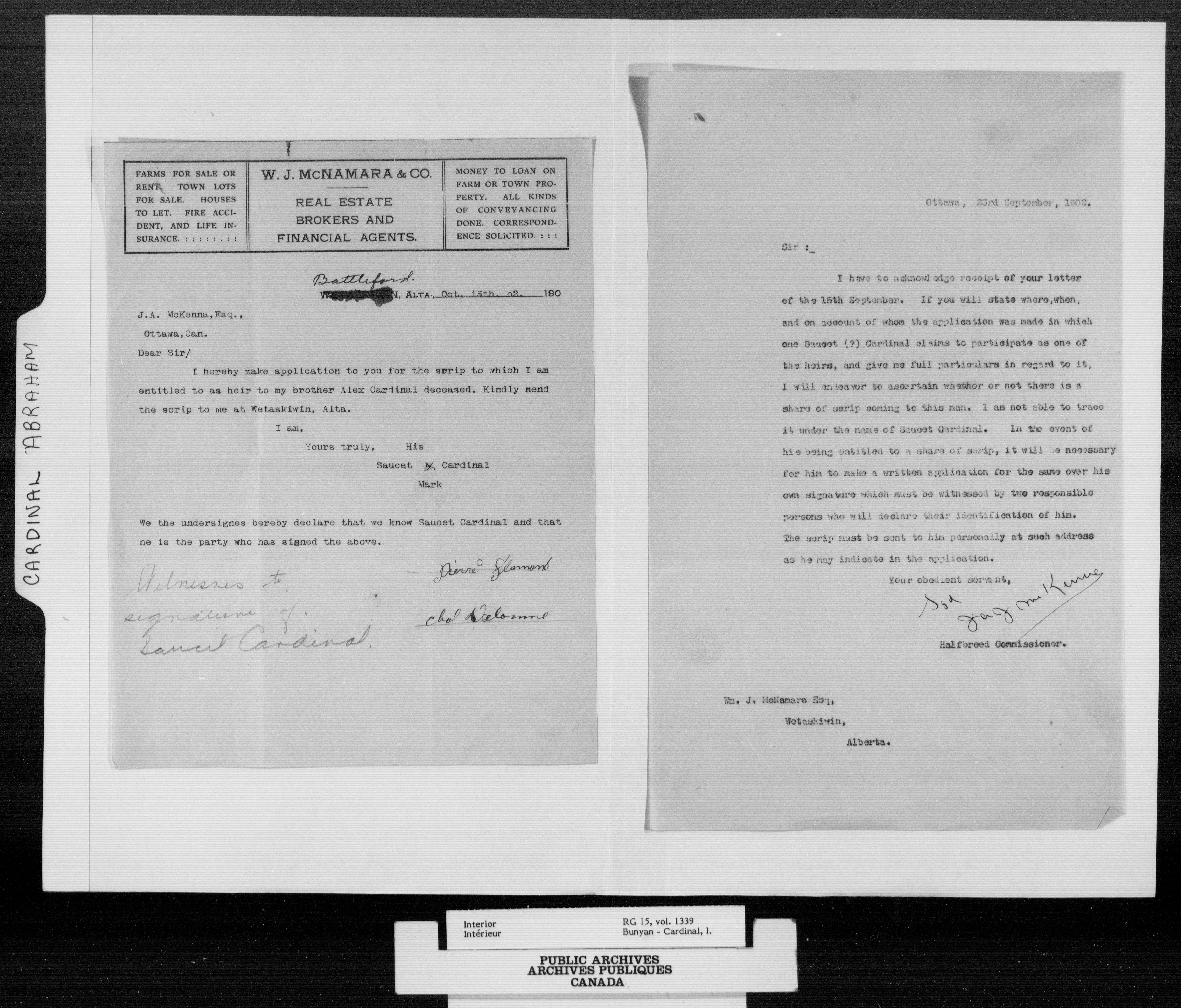 Department of the Interior, Dominion Lands Branch : North-West Territories Métis scrip applications - 14955