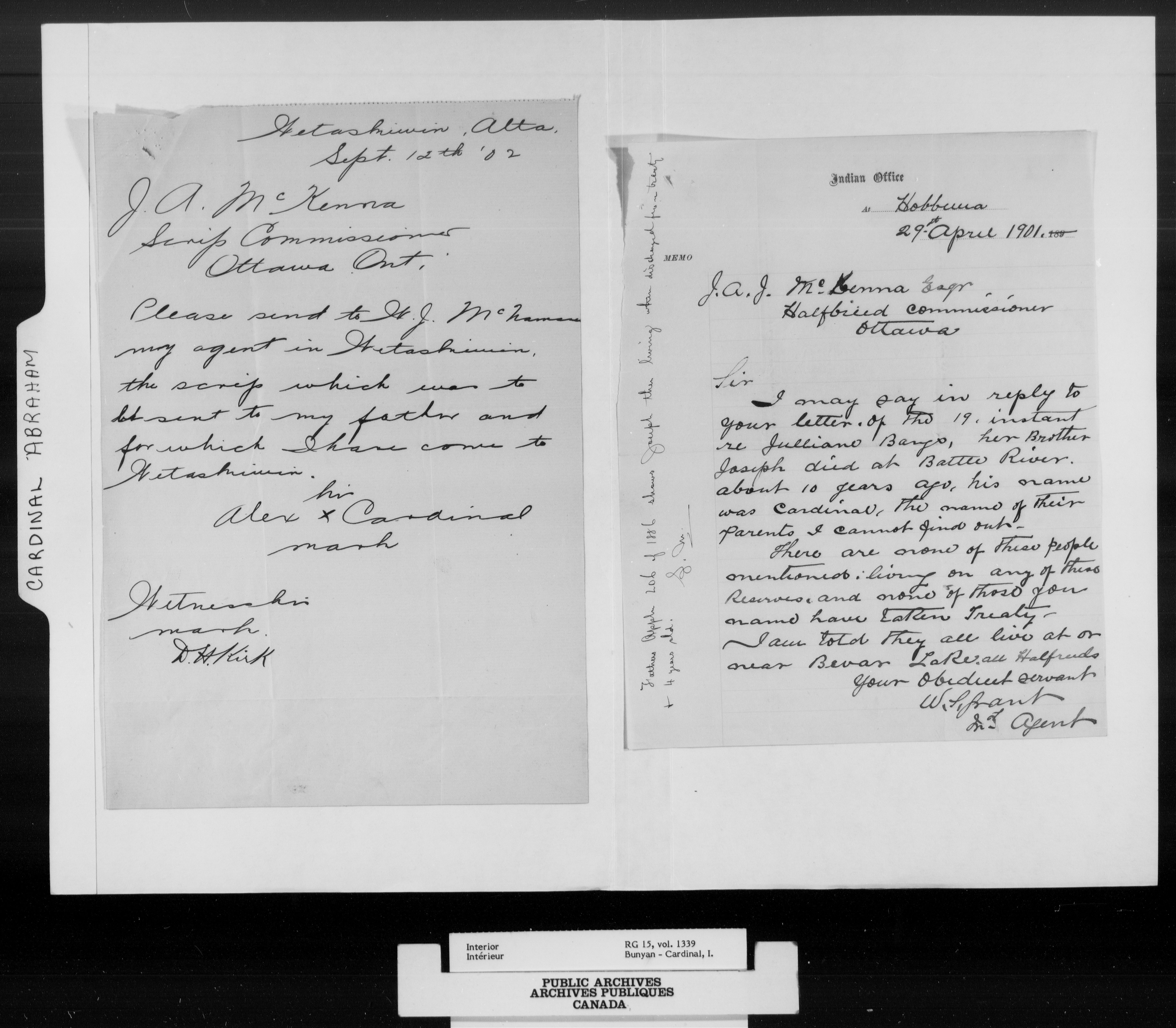 Department of the Interior, Dominion Lands Branch : North-West Territories Métis scrip applications - 14955
