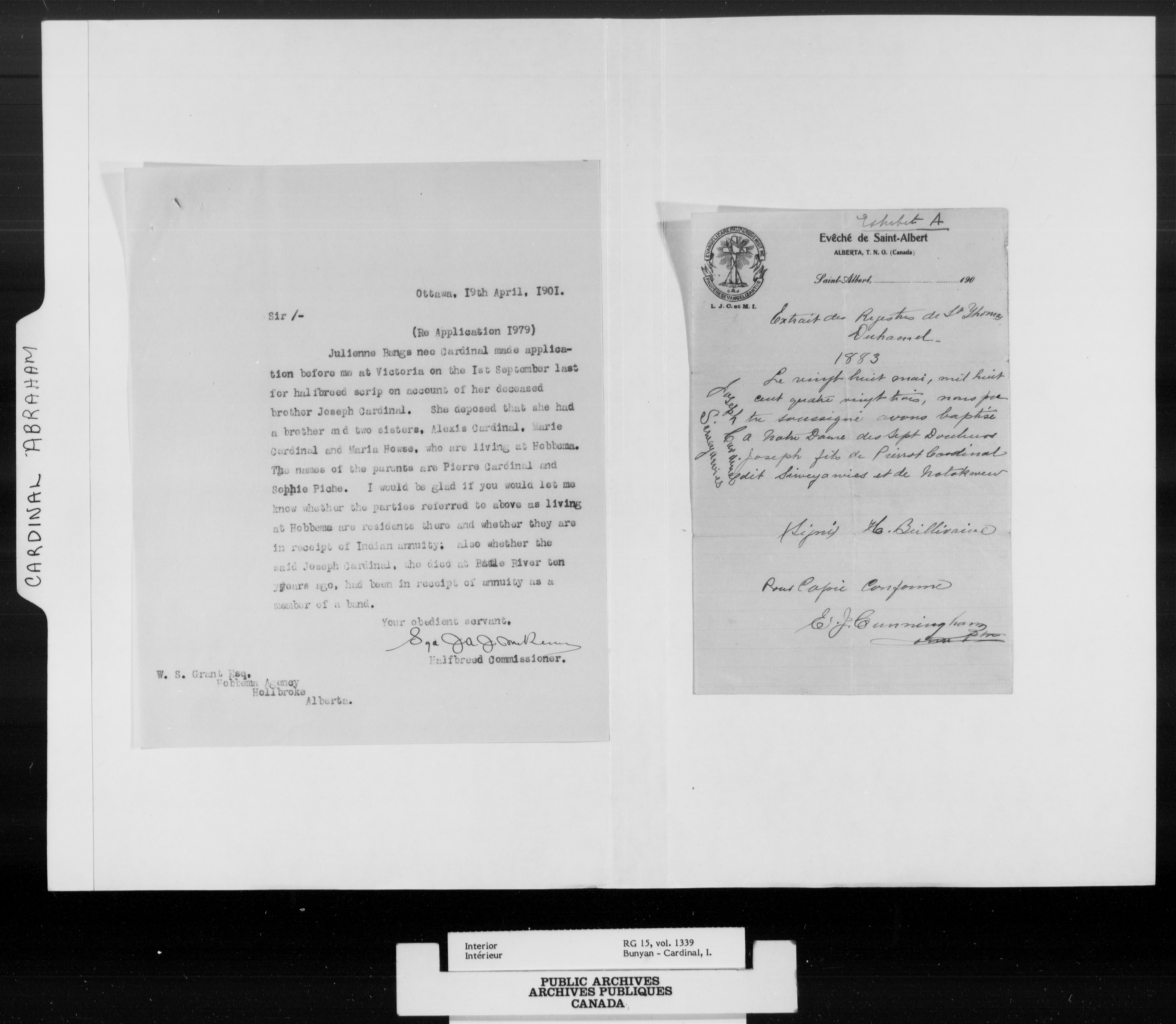 Department of the Interior, Dominion Lands Branch : North-West Territories Métis scrip applications - 14955