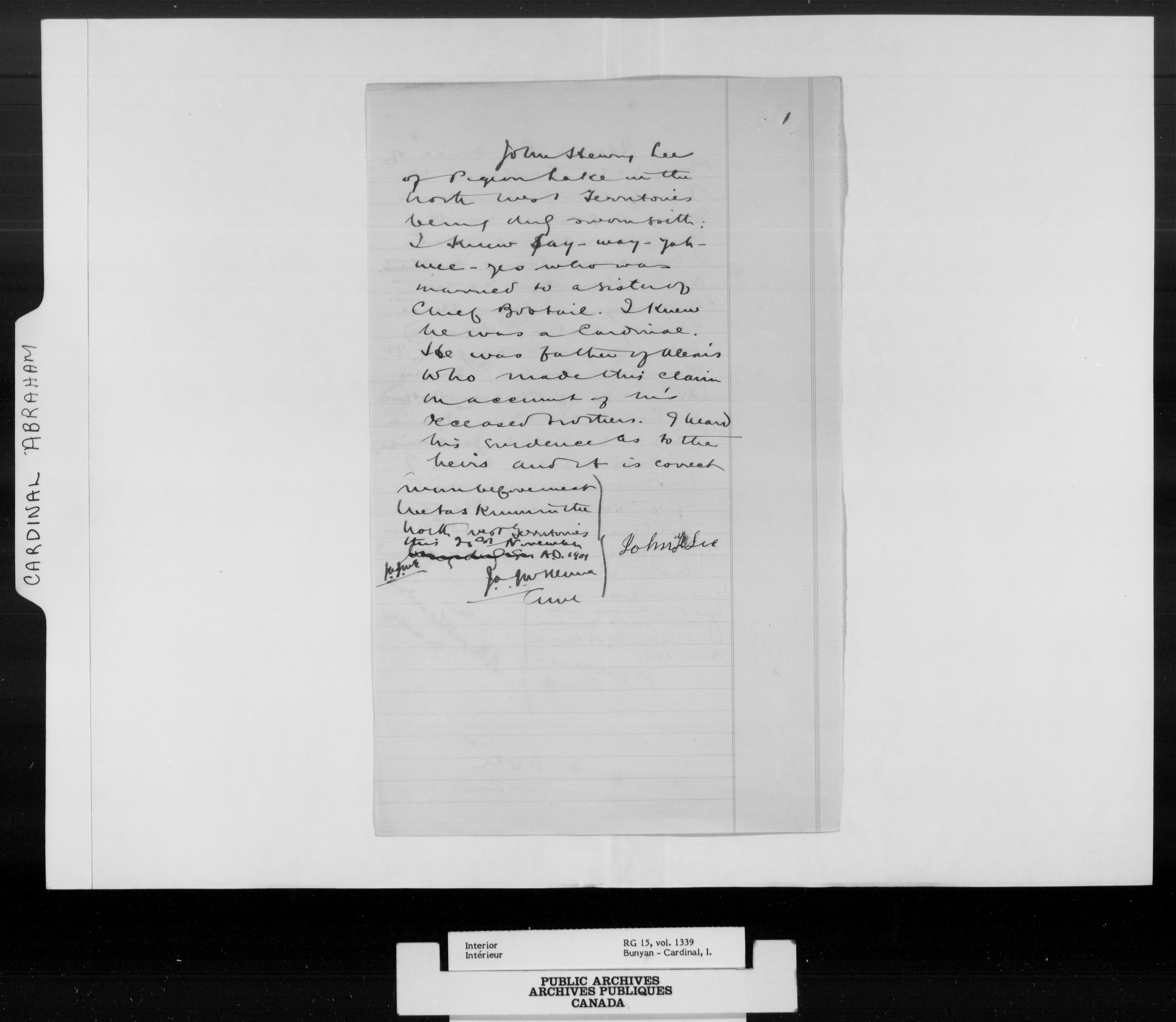 Department of the Interior, Dominion Lands Branch : North-West Territories Métis scrip applications - 14955