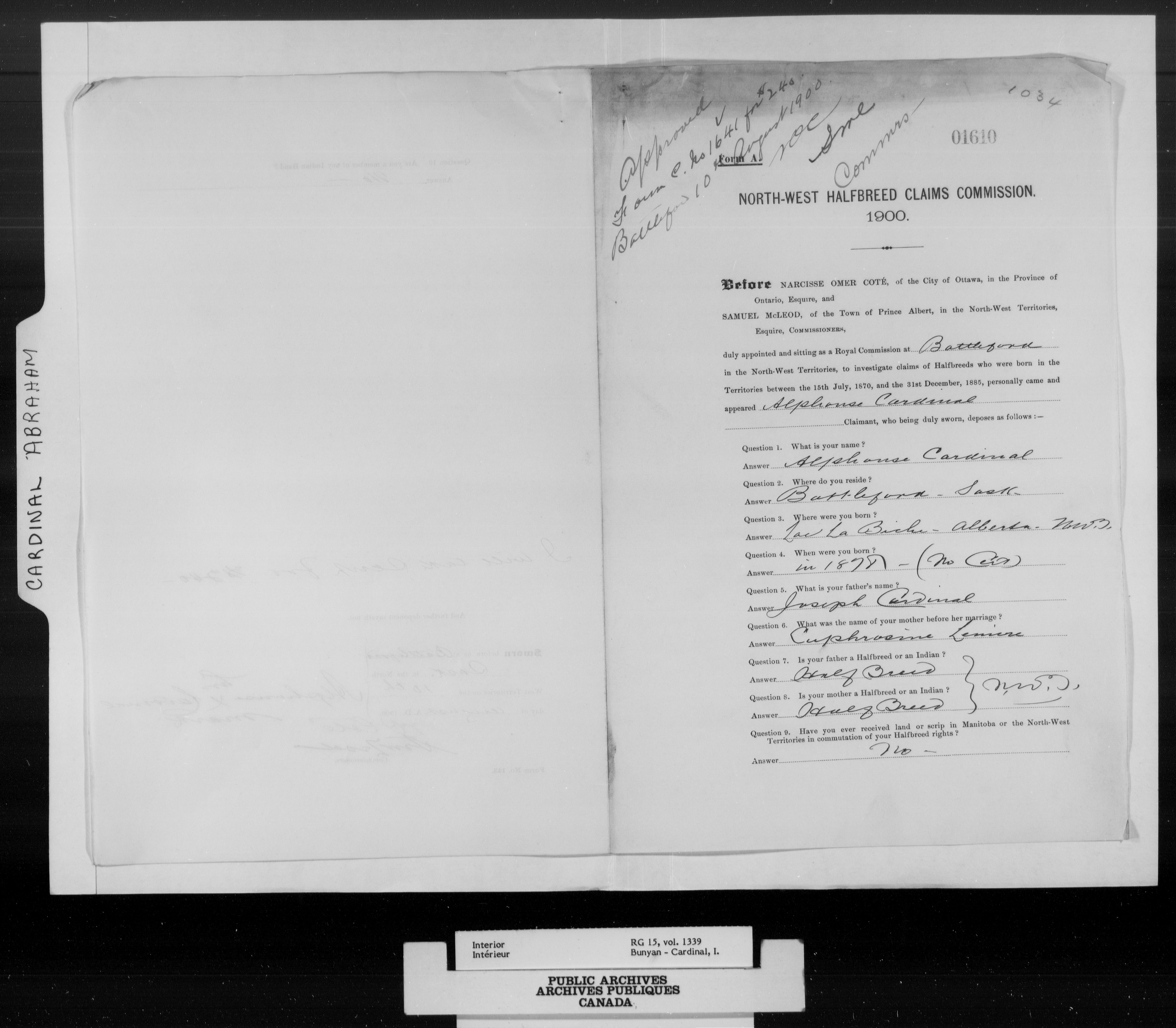 Department of the Interior, Dominion Lands Branch : North-West Territories Métis scrip applications - 14955