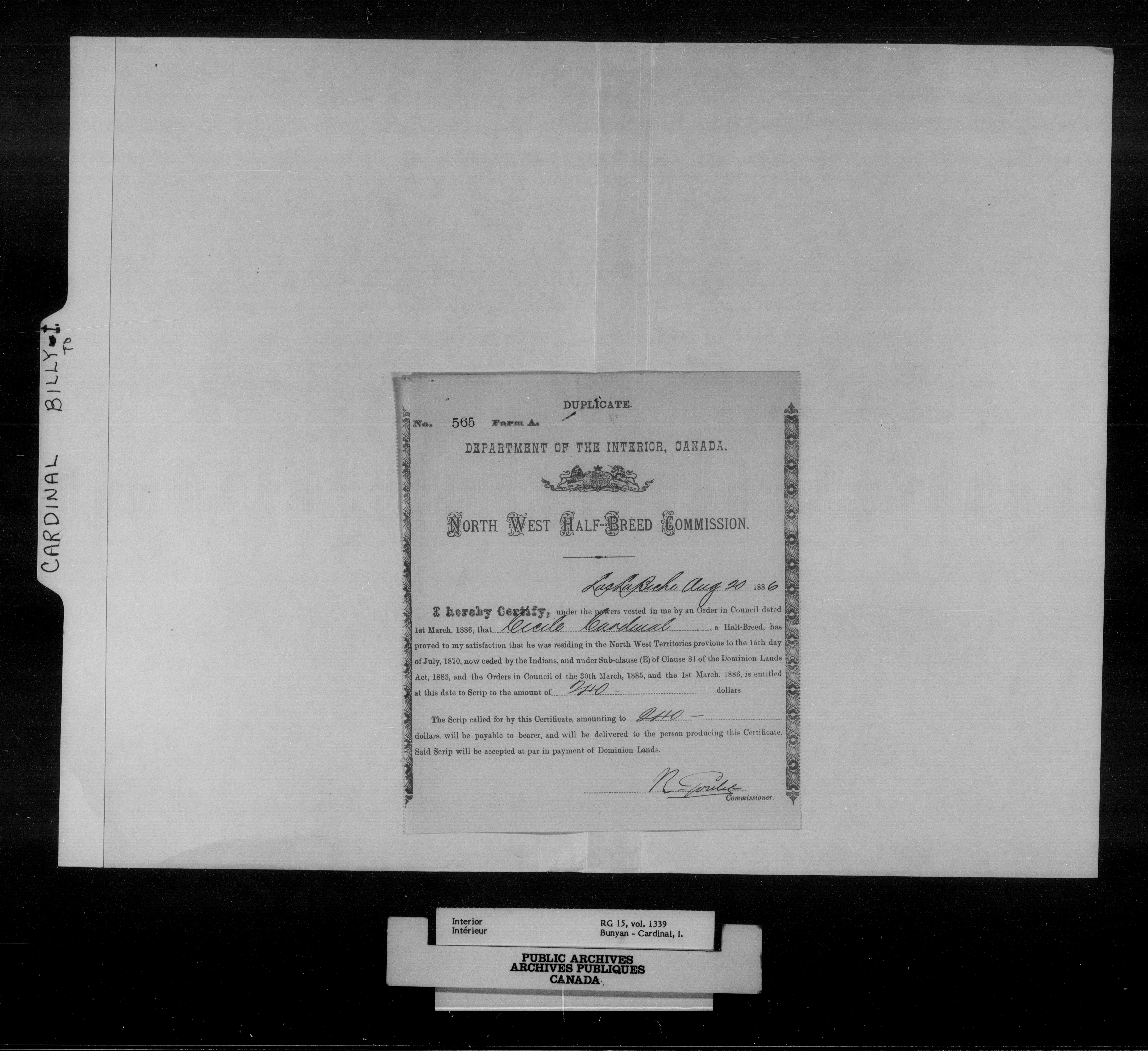 Department of the Interior, Dominion Lands Branch : North-West Territories Métis scrip applications - 14956