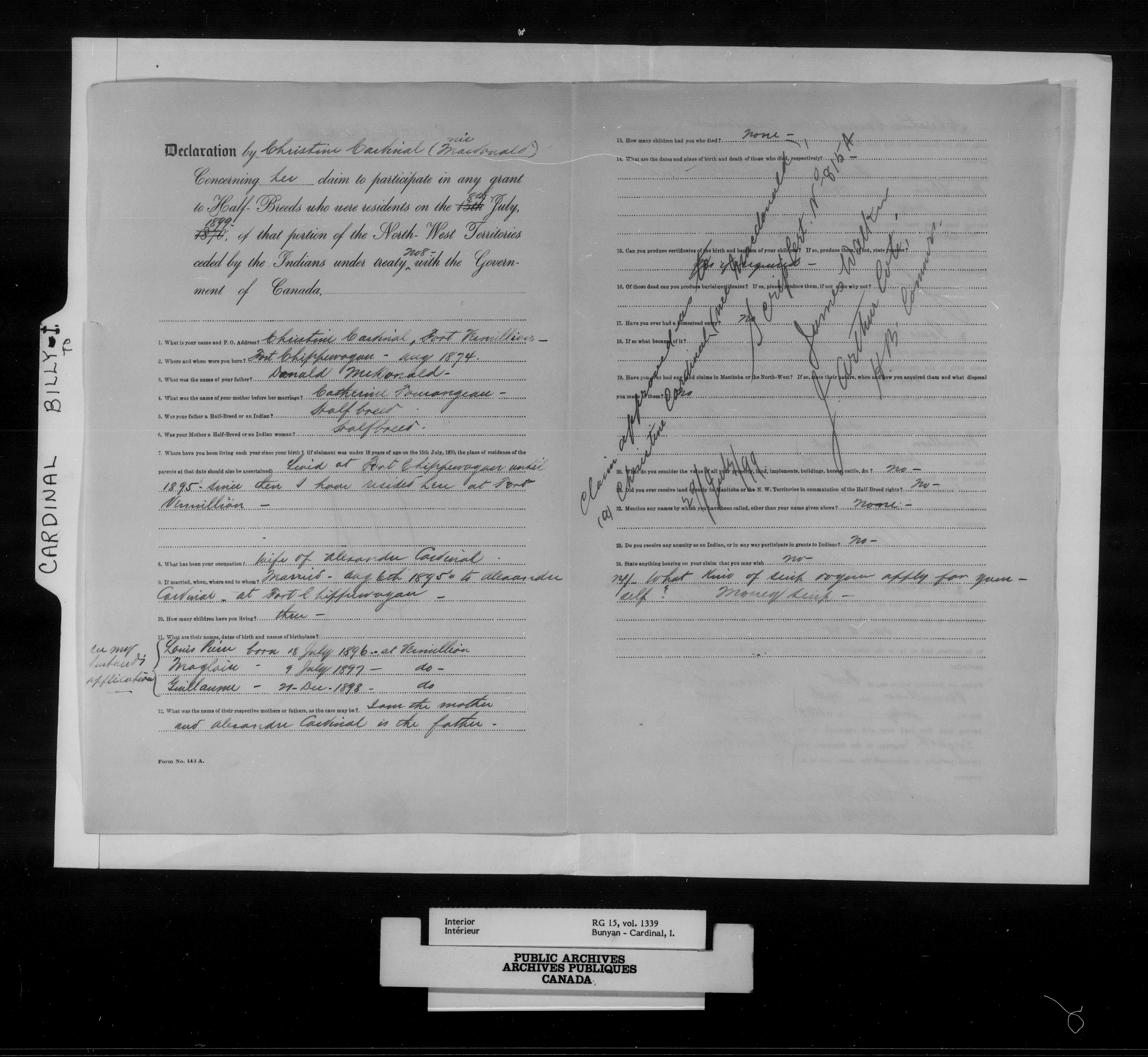 Department of the Interior, Dominion Lands Branch : North-West Territories Métis scrip applications : C-14956