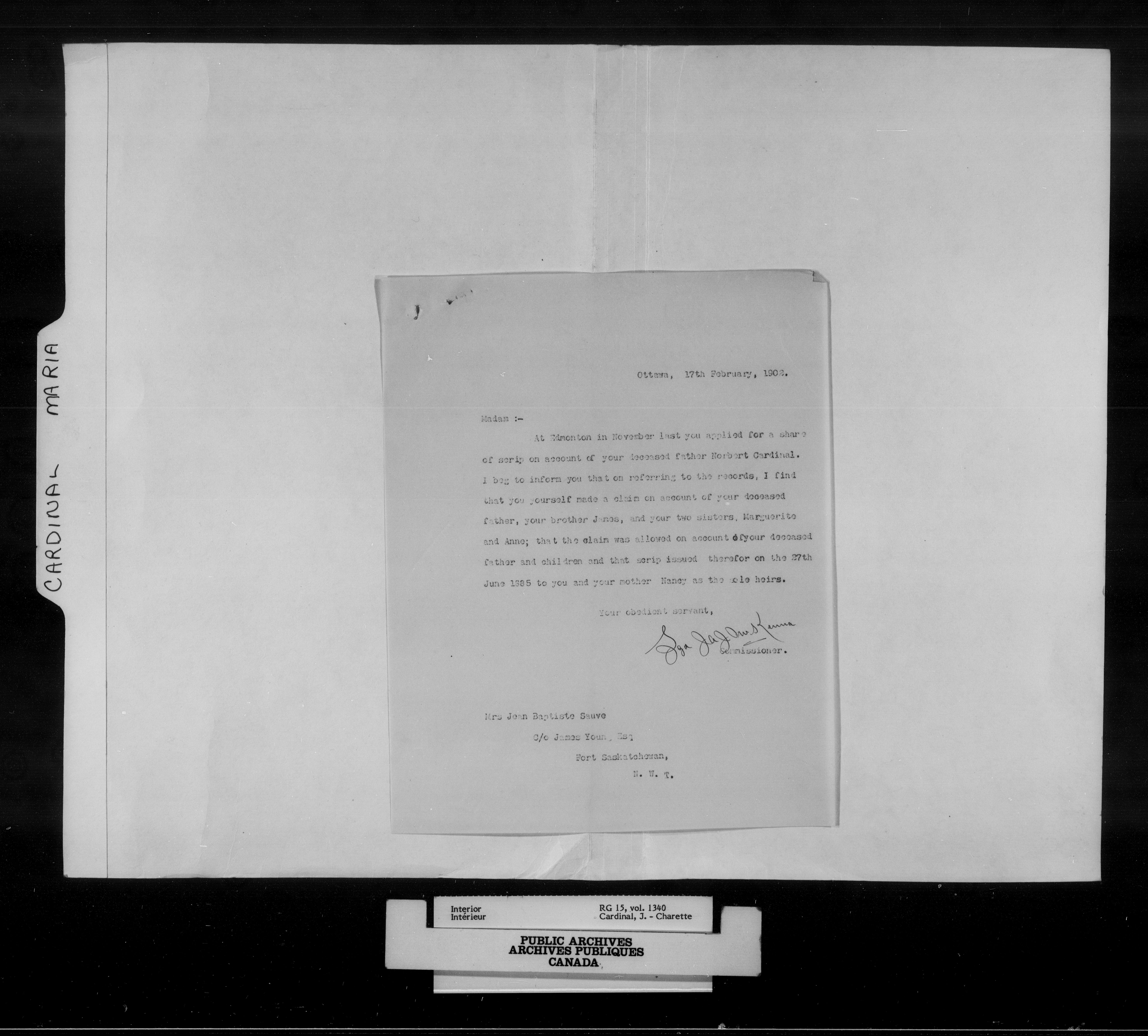 Department of the Interior, Dominion Lands Branch : North-West Territories Métis scrip applications - 14956