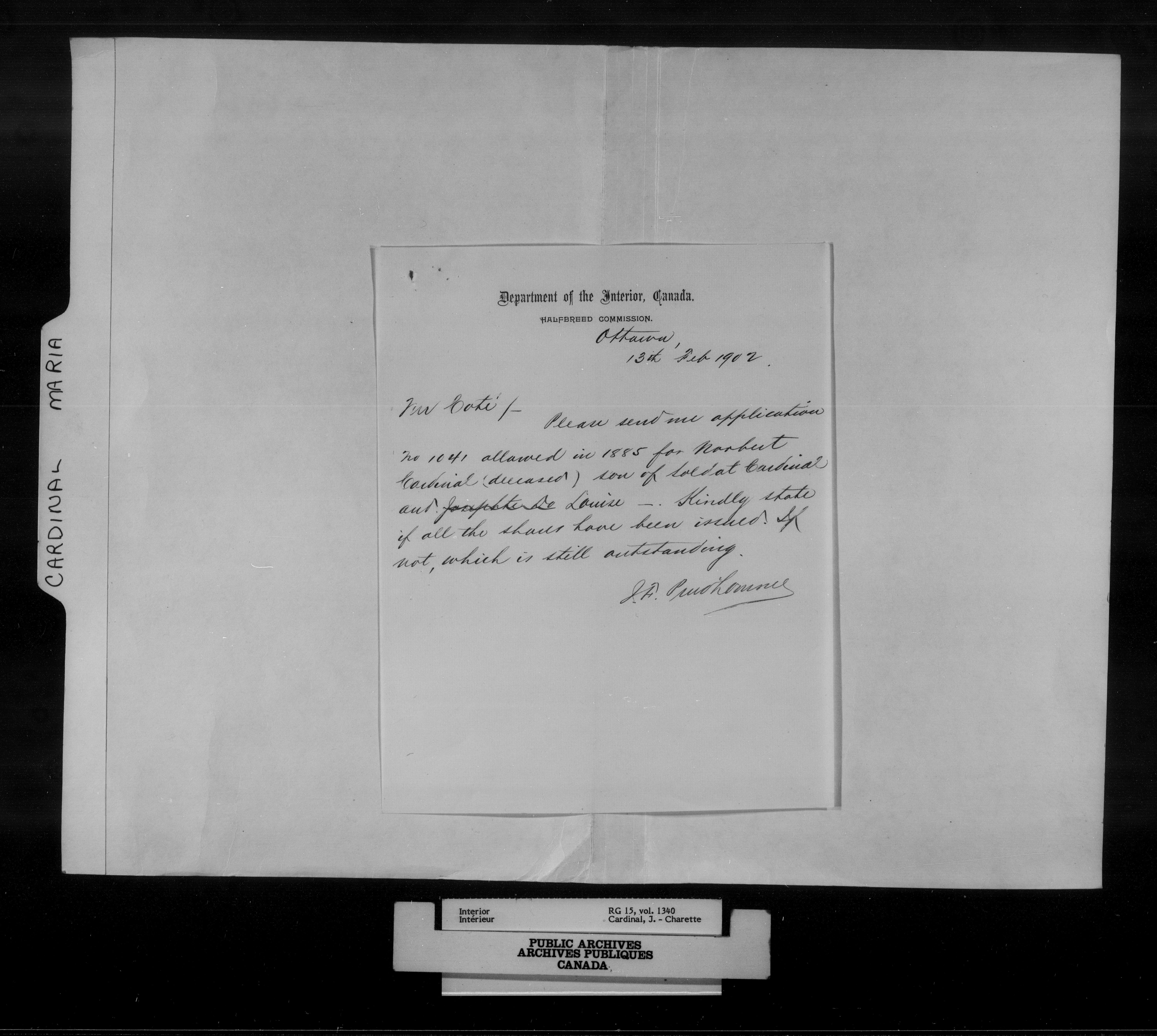 Department of the Interior, Dominion Lands Branch : North-West Territories Métis scrip applications : C-14956